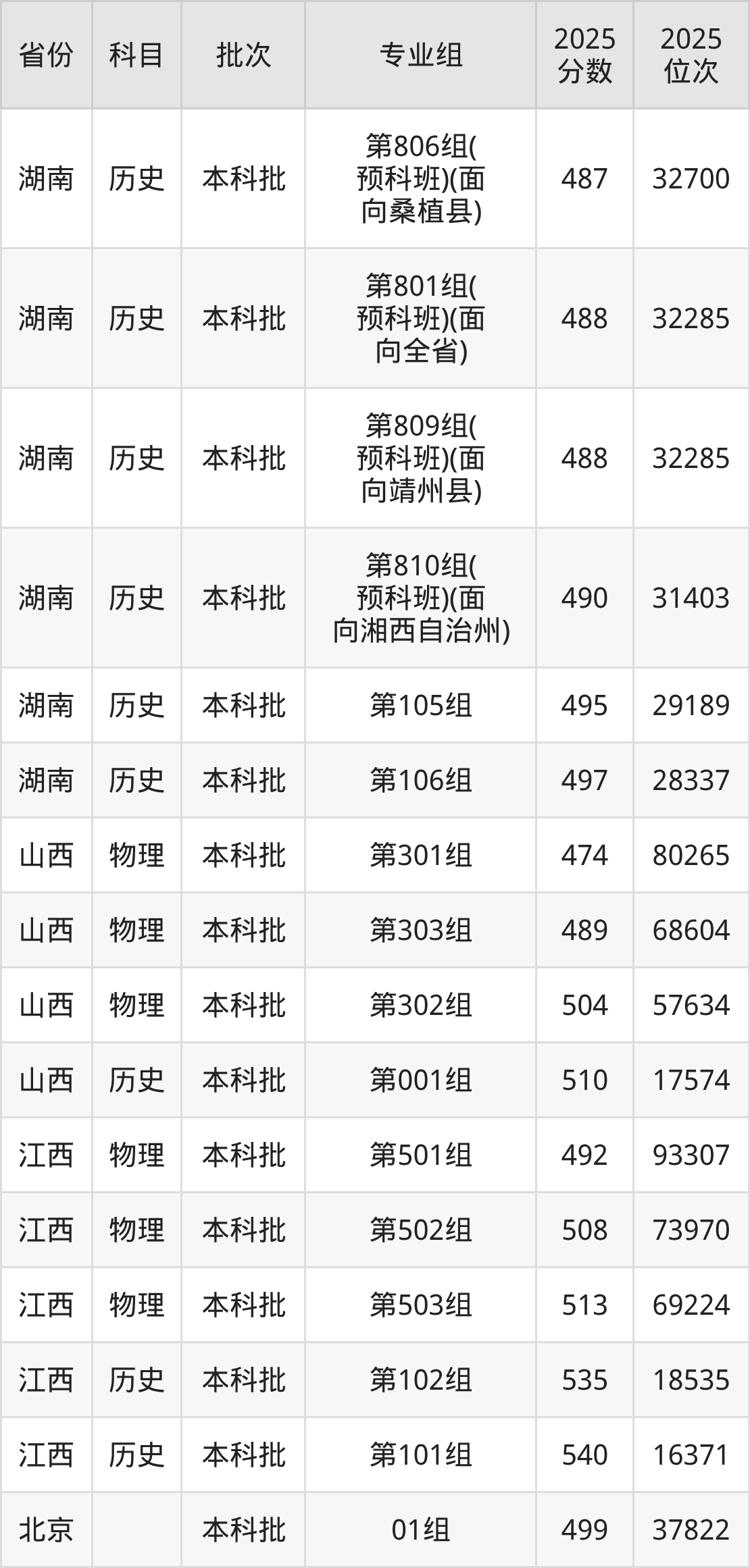 湘南学院第001组:2025年投档录取最低分为494分,录取最低位次为10554名。