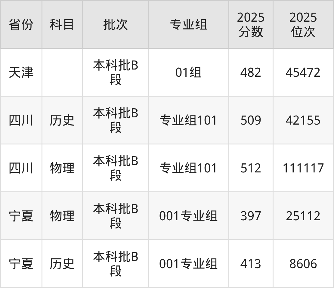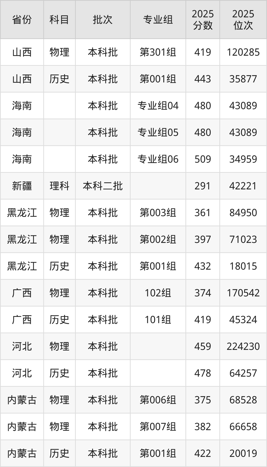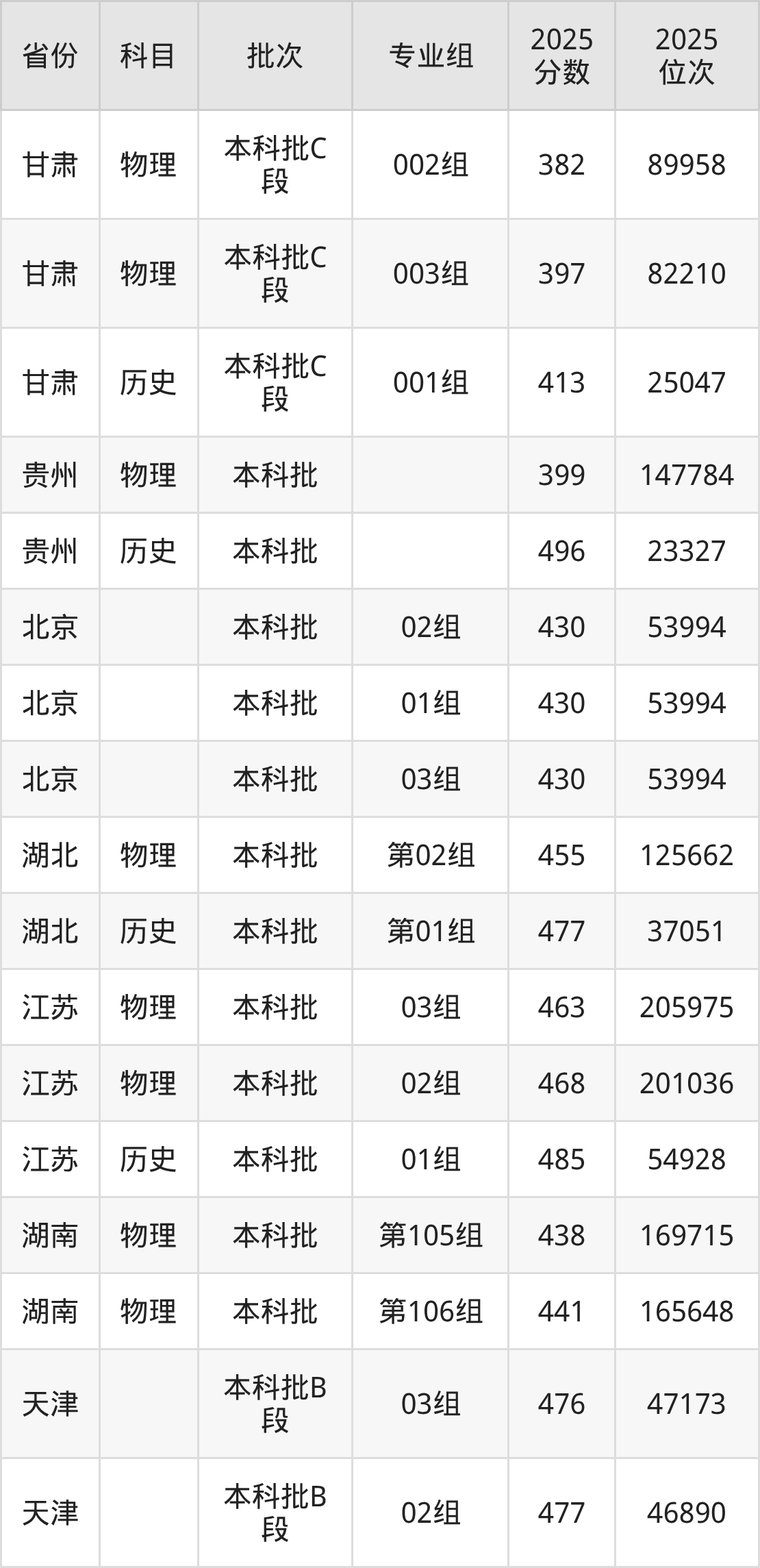 2025年在本科物理类进行招生,各专业组分数线详情如下: