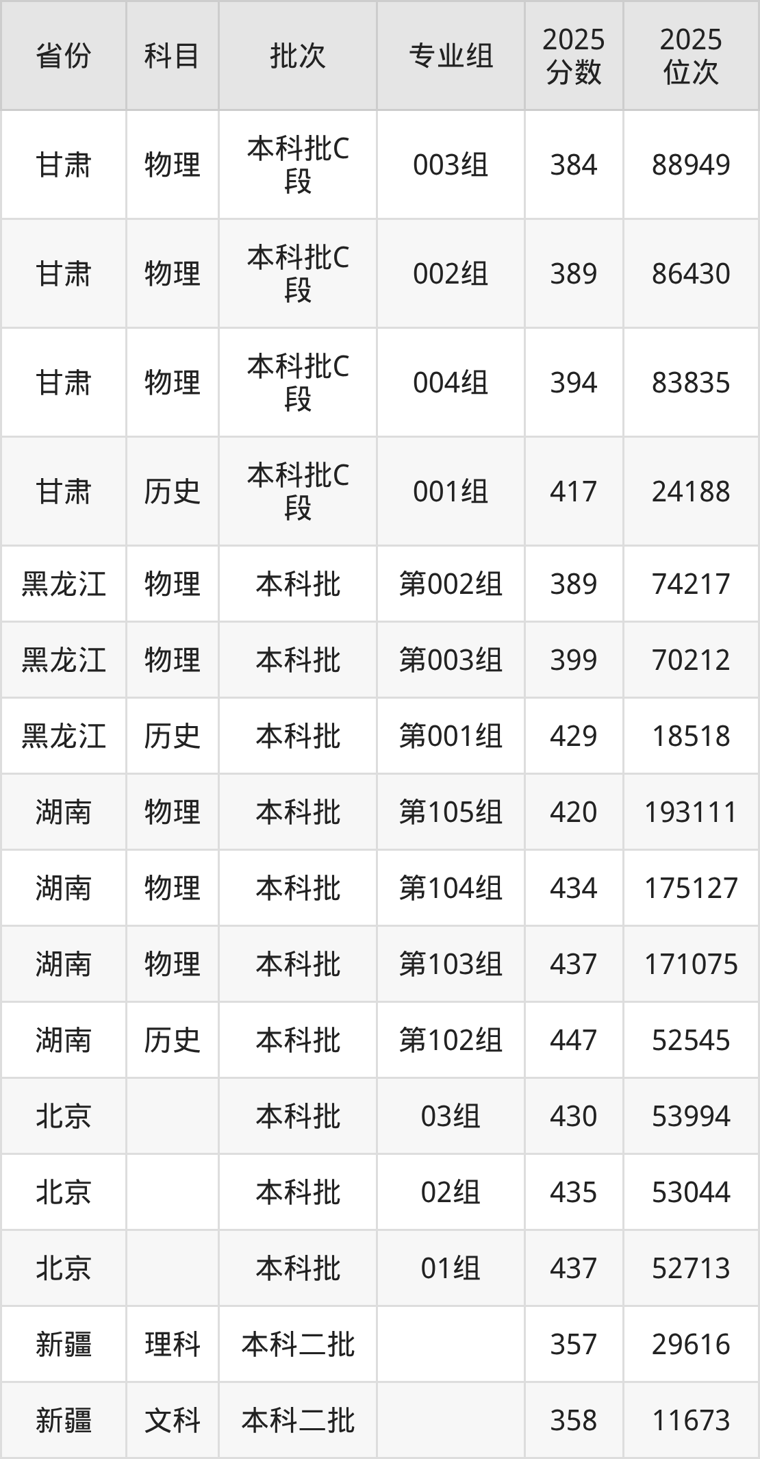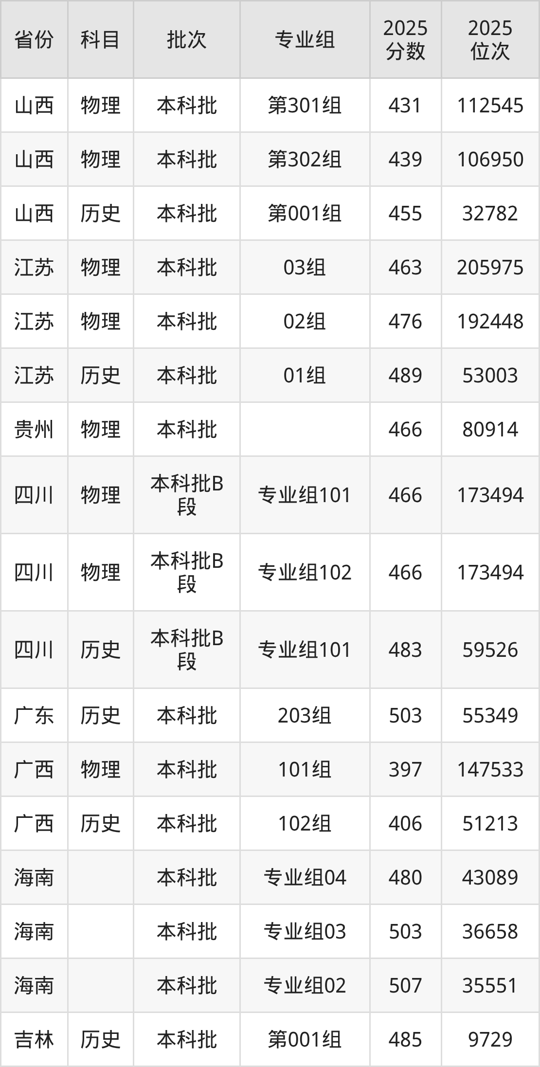 2025年在本科物理类进行招生,各专业组分数线详情如下: