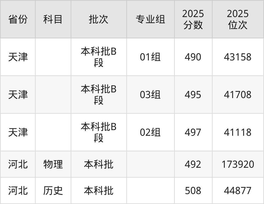 2025年在本科历史类进行招生,各专业组分数线详情如下: