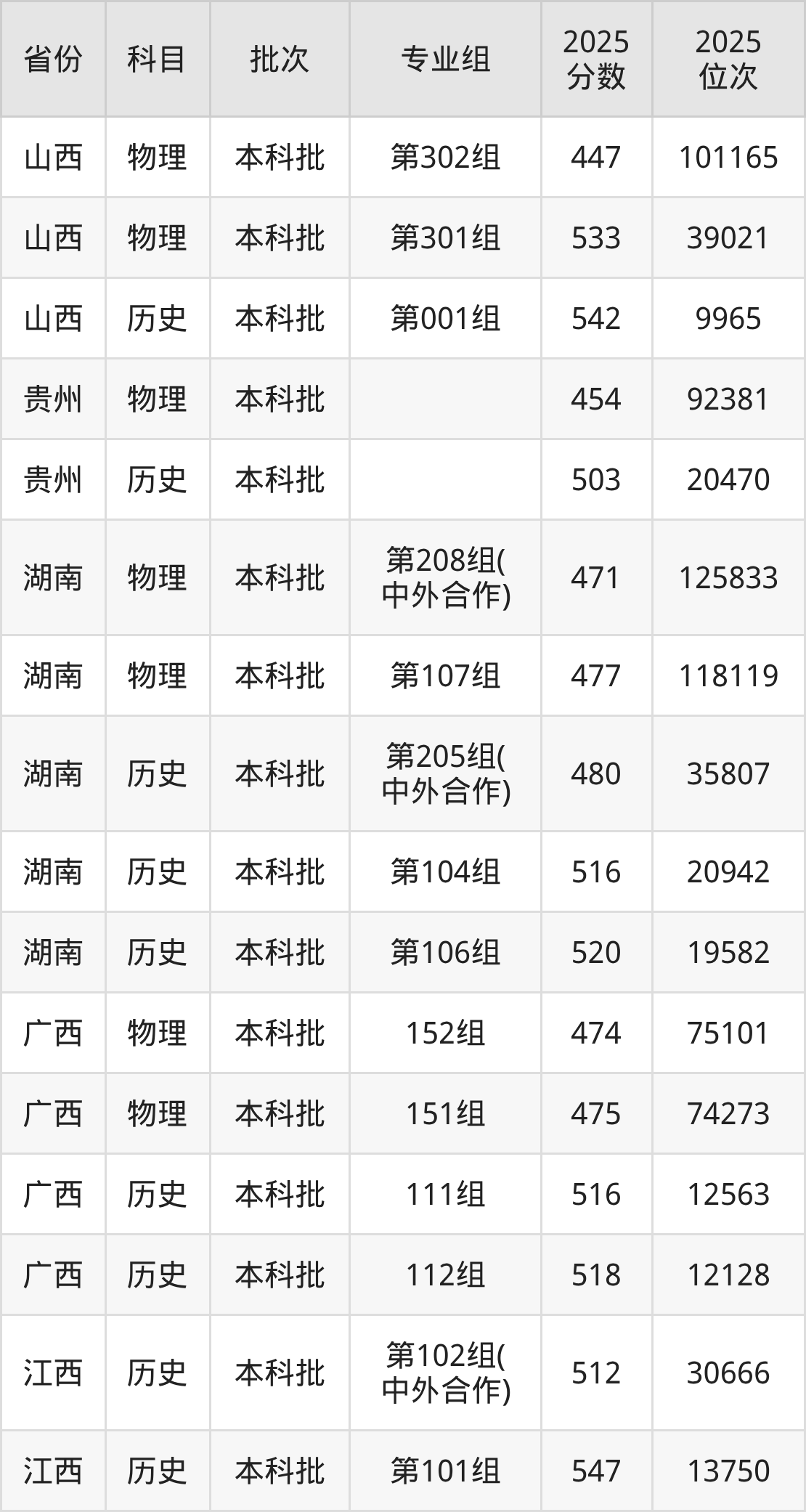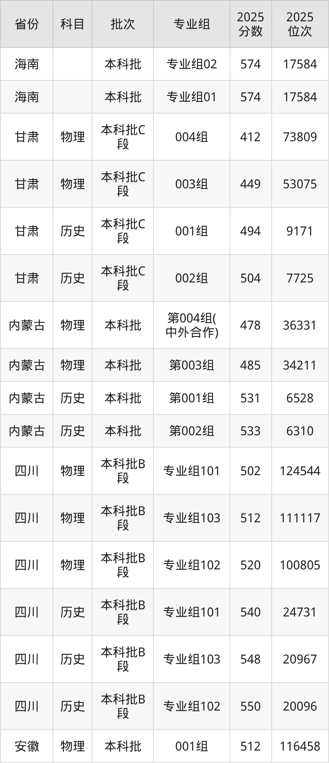 2025年投档录取最低分为503分,录取最低位次为20470名。