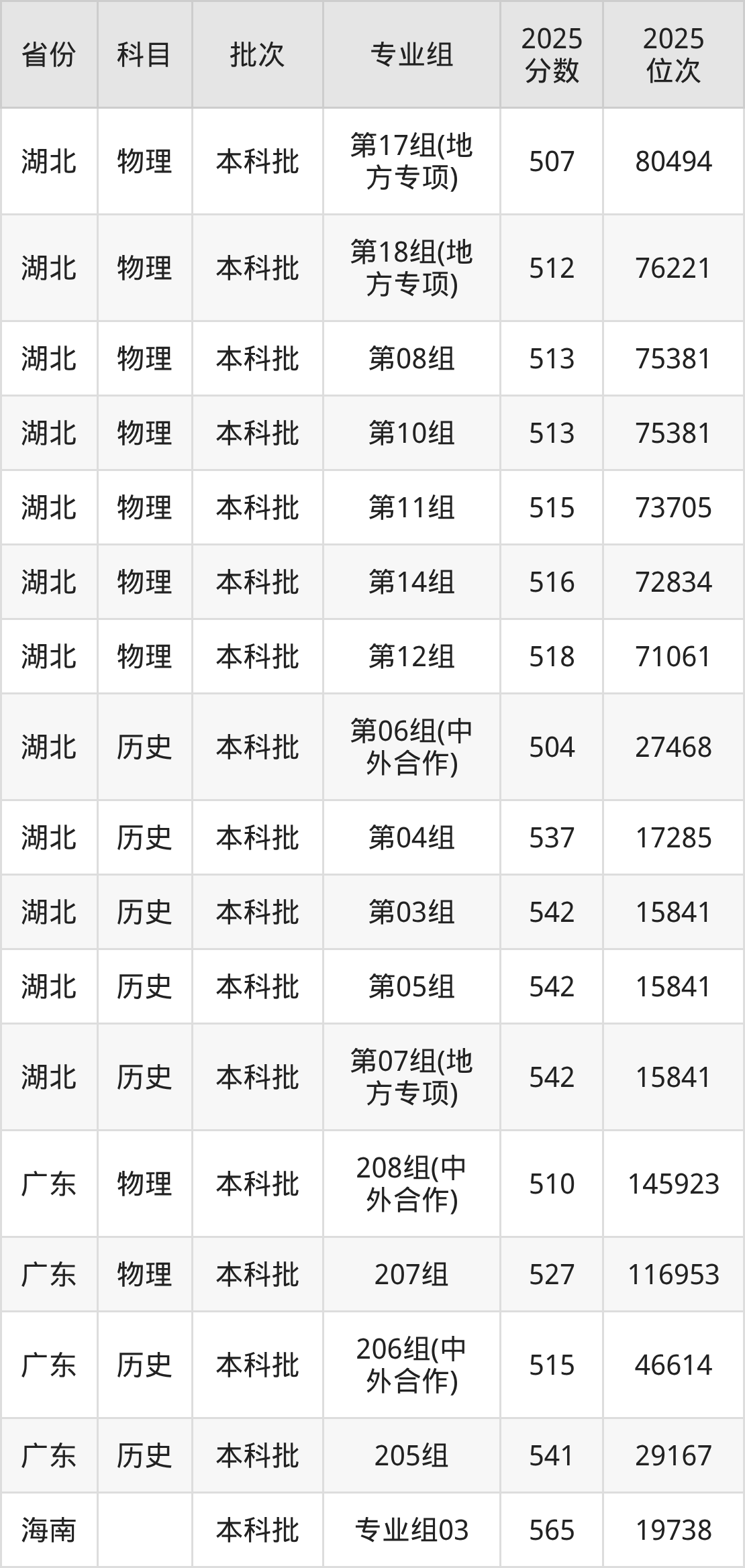 湖北第二师范学院第17组(地方专项计划):2025年投档录取最低分为507分,录取最低位次为80494名。