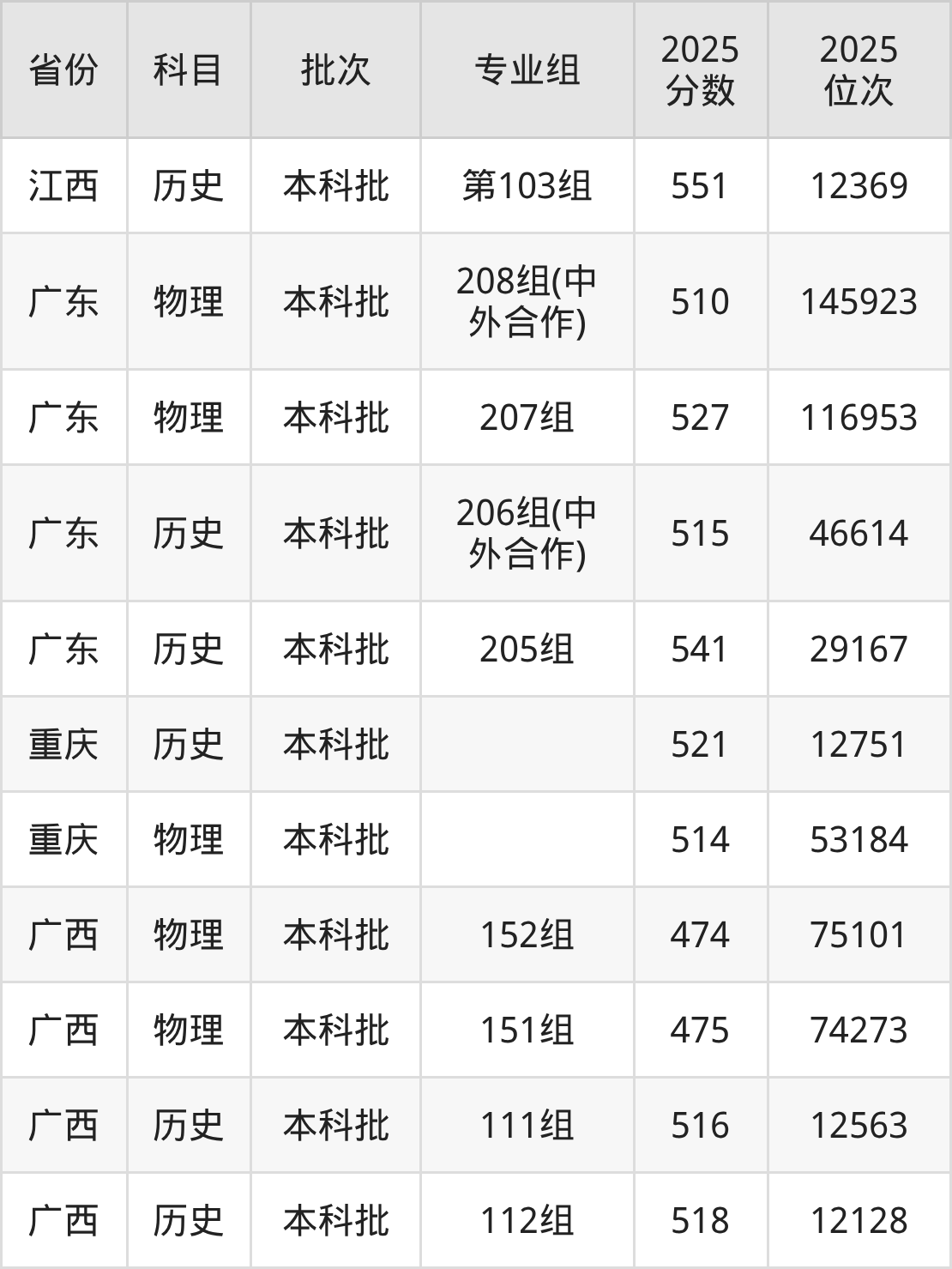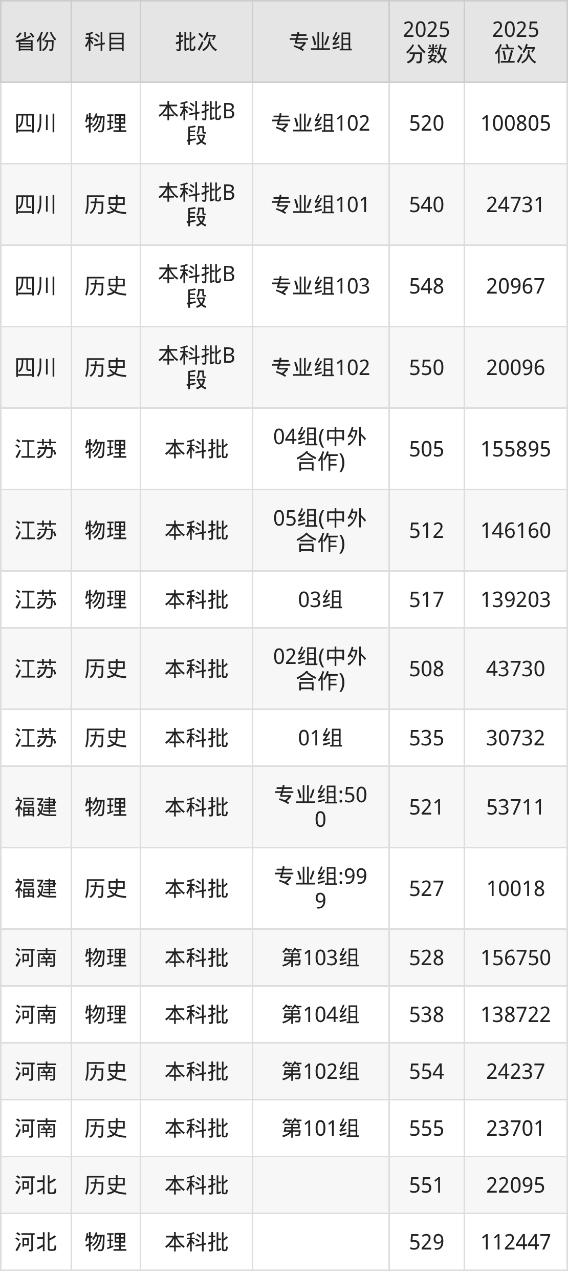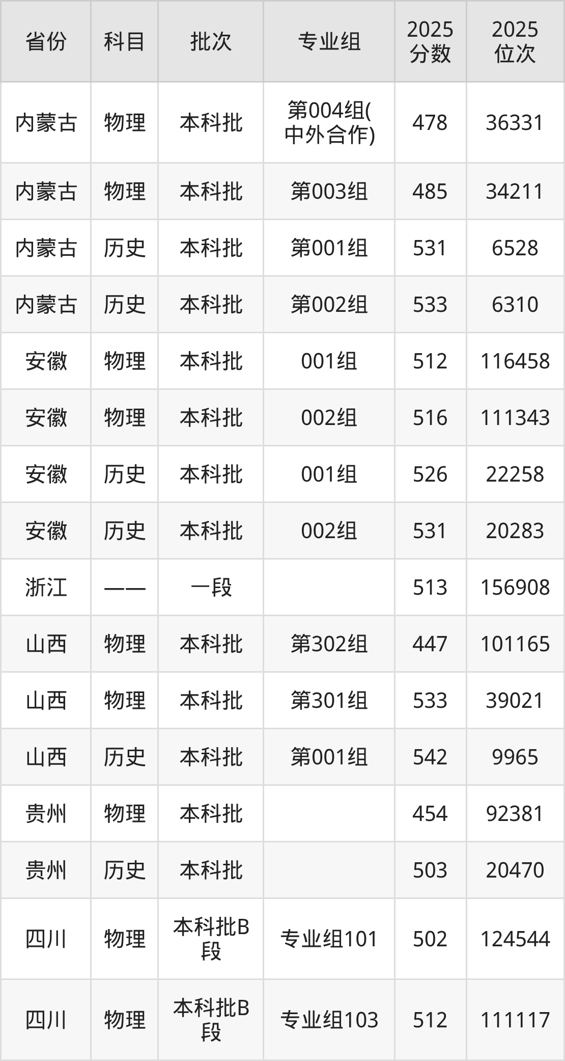 普通类本科物理类最低447分,本科历史类最低542分