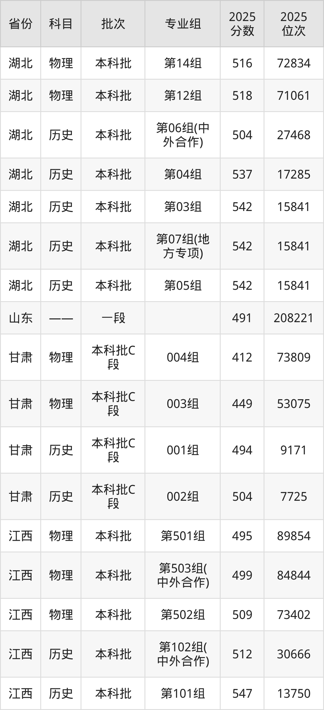 湖北第二师范学院第001组:2025年投档录取最低分为542分,录取最低位次为9965名。