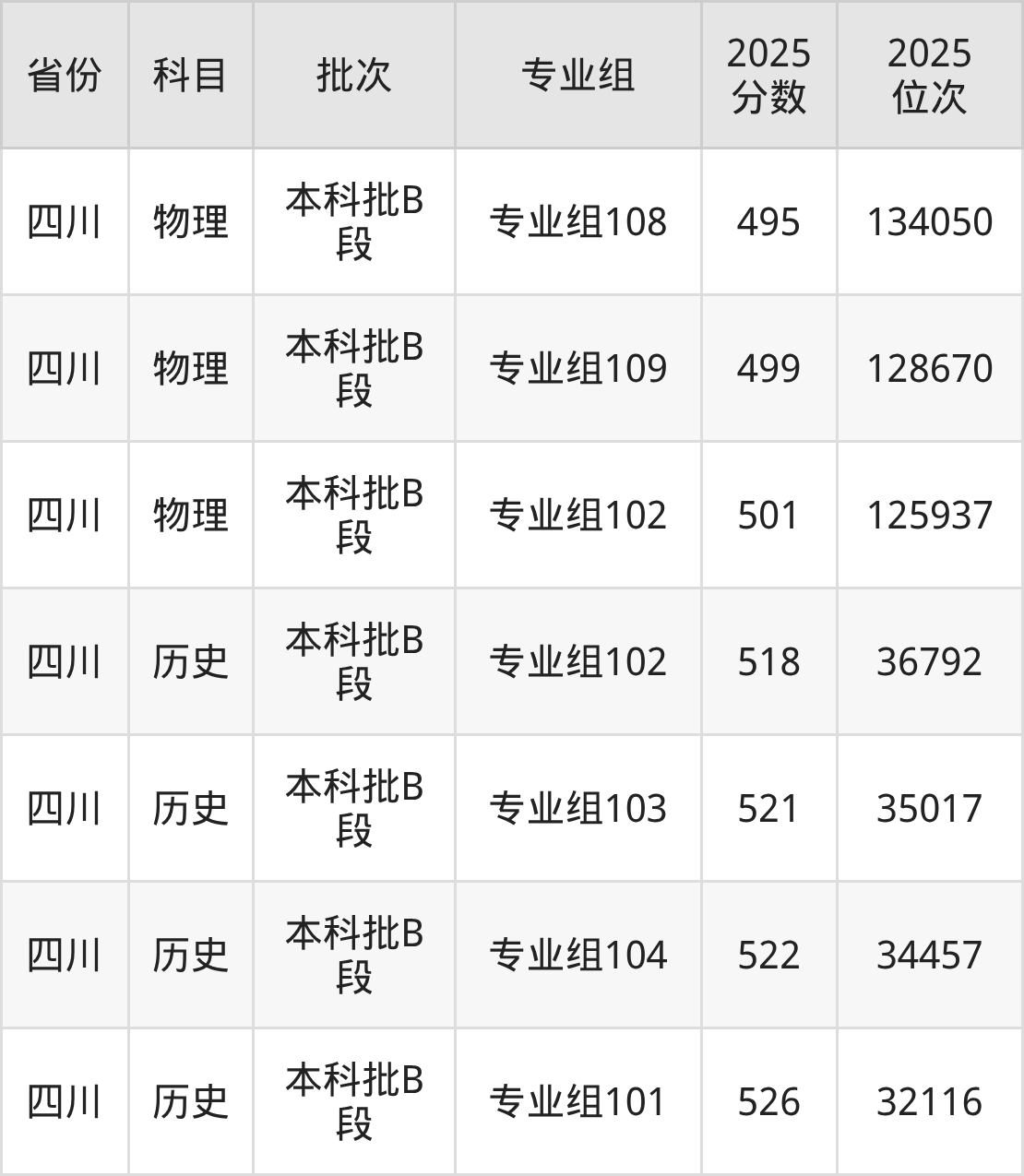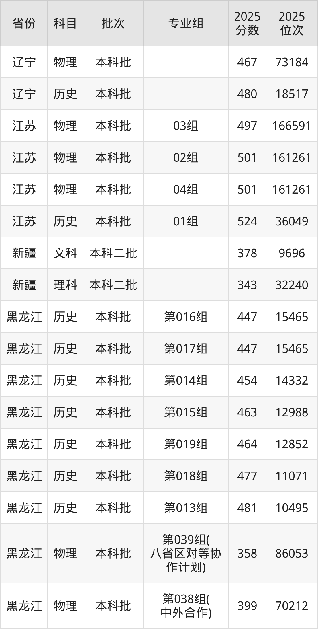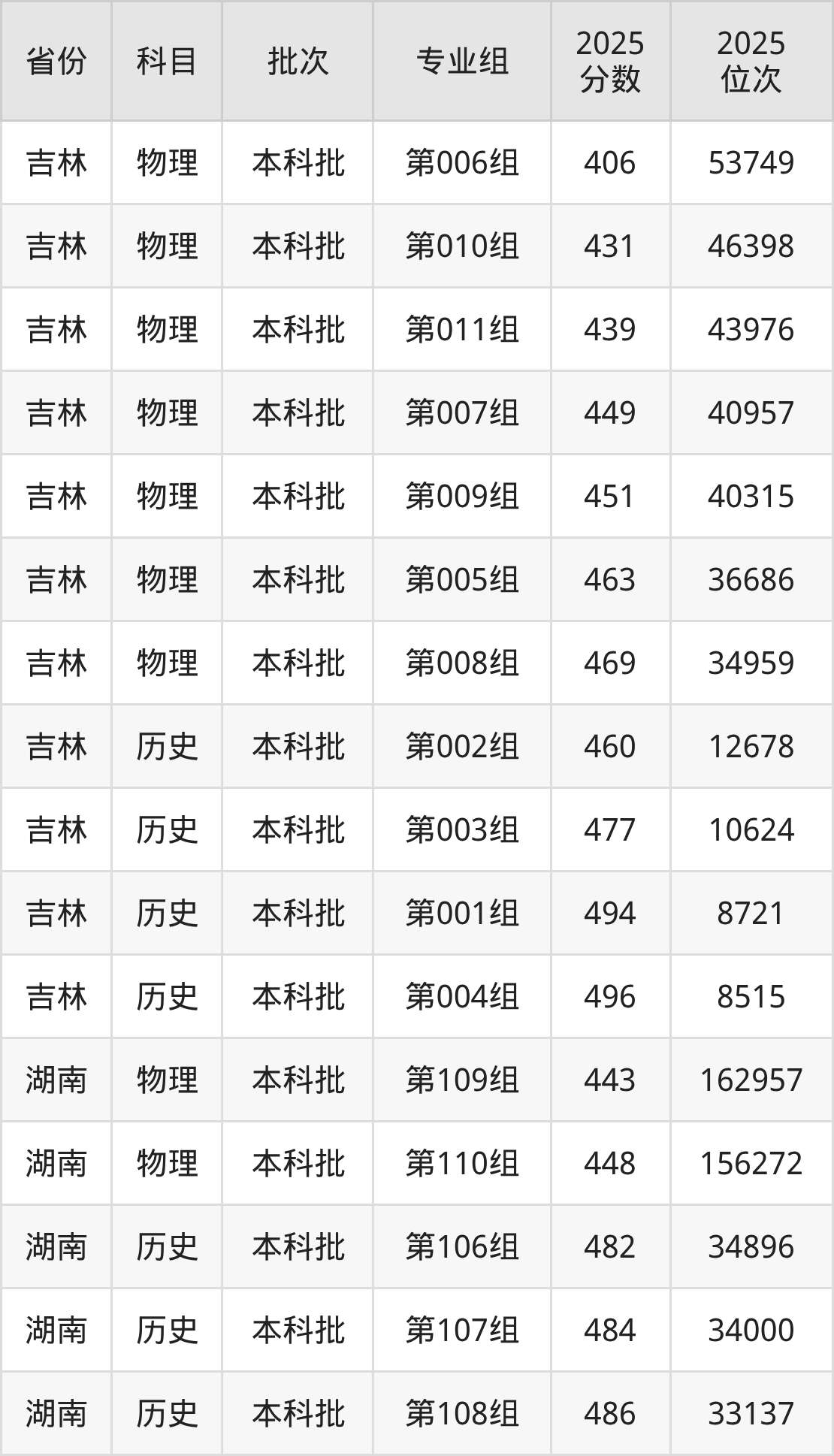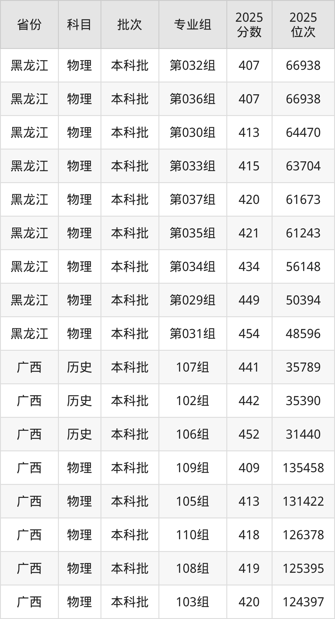 2025年在本科物理类进行招生,各专业组分数线详情如下: