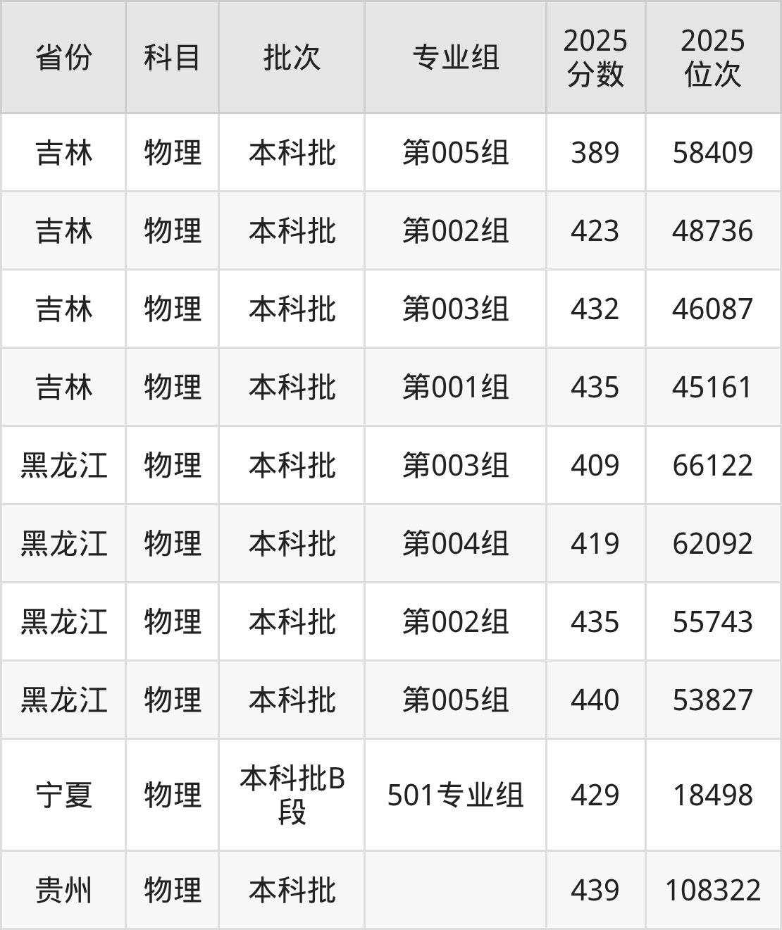 本科物理类投档录取最低439分