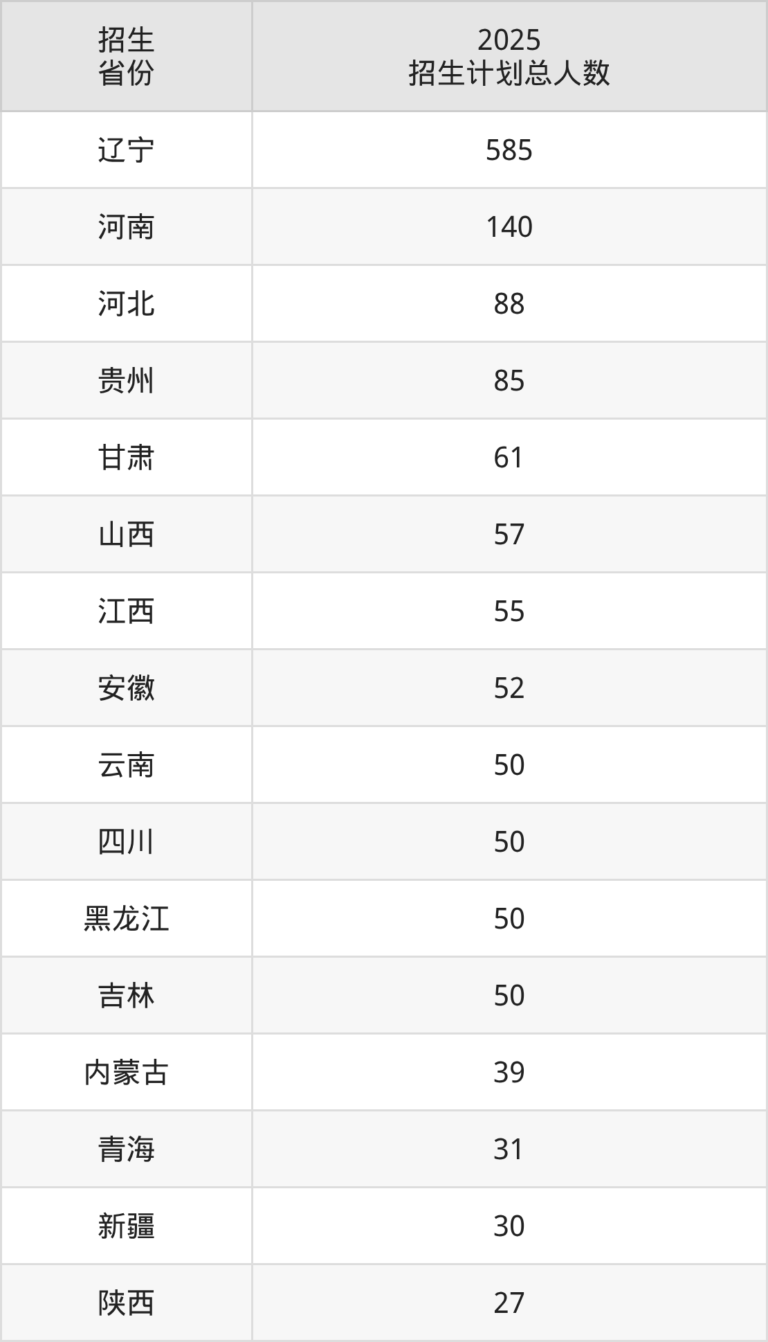 2025年渤海船舶职业学院面向全国20个省市开展专科招生;招生专业共26个,招生人数共1472人。2025年在辽宁省招生计划总人数是585人,其中,渤海船舶职业学院在辽宁省招生人数最多的是船舶工程技术。渤海船舶职业学院在各省具体招生人数情况如下表。