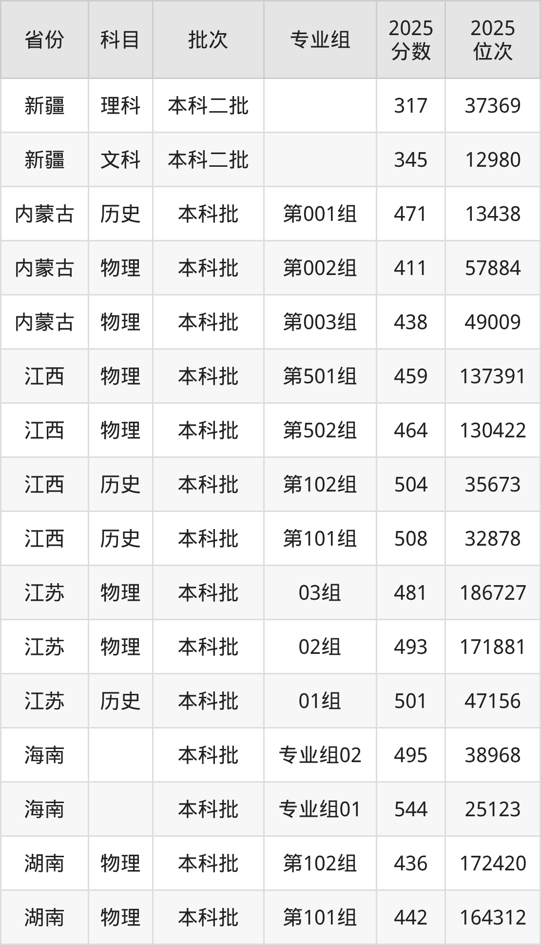2025年黄河科技学院全国录取分数线是317分到544分,录取最低在新疆理科、录取最高在海南(专业组01)。各省各专业组最低分具有差异,详情如下: