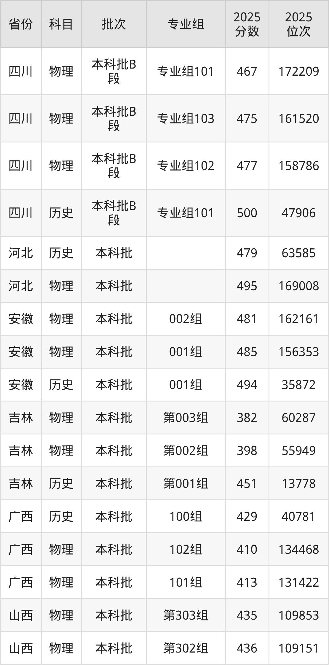 普通类本科物理类最低464分,本科历史类最低493分