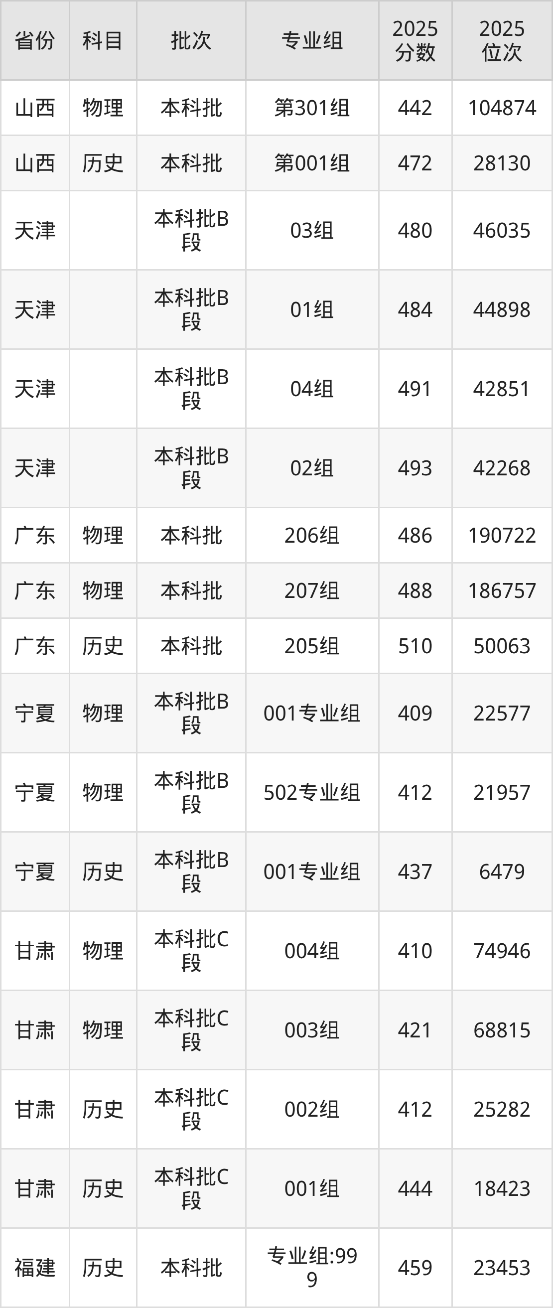 普通类本科历史类最低459分,本科物理类最低473分