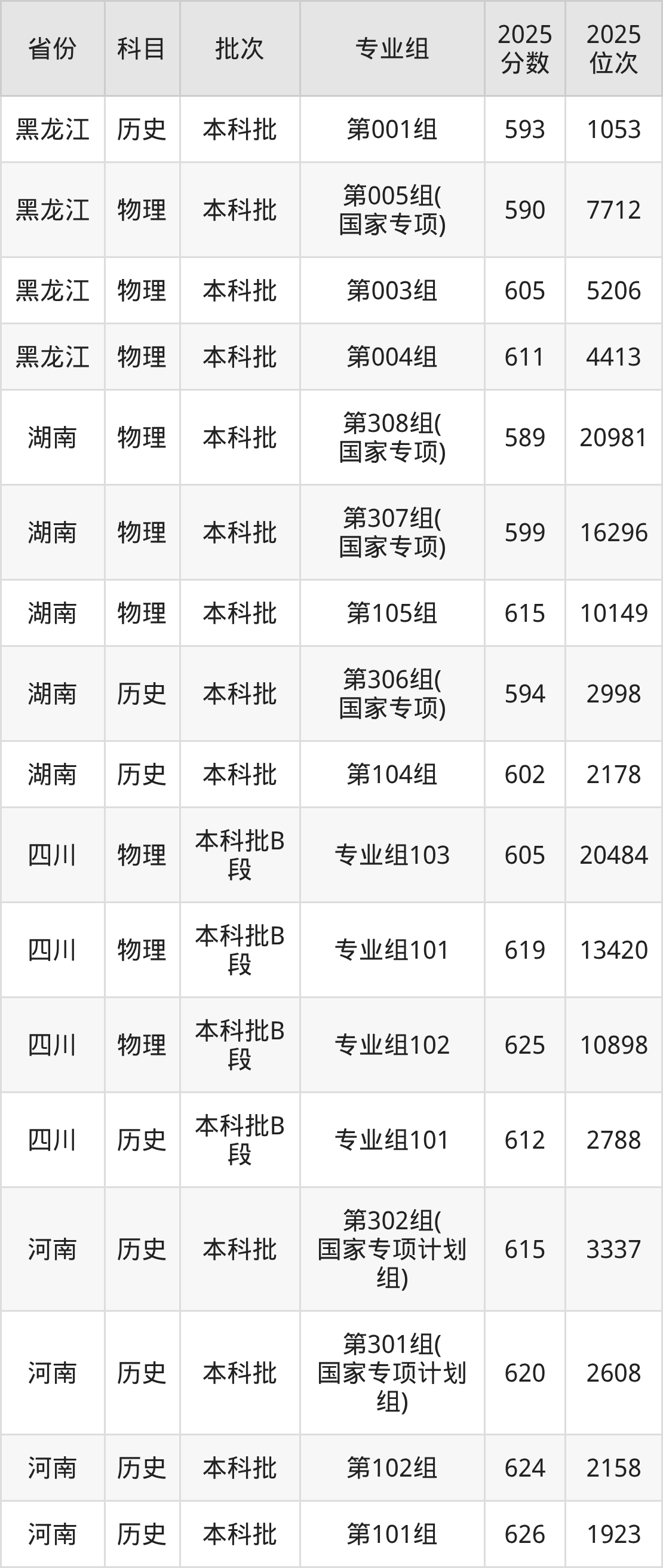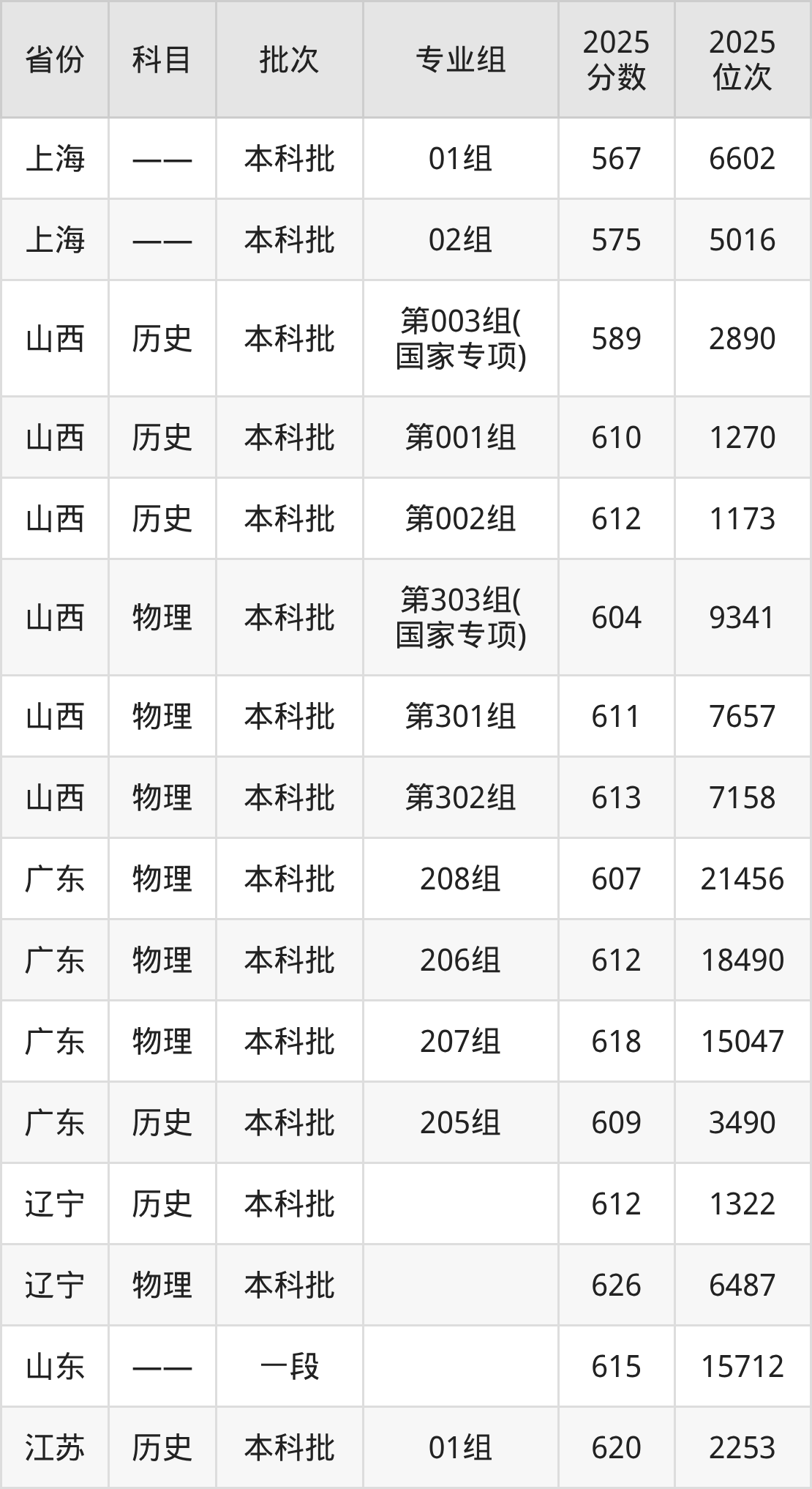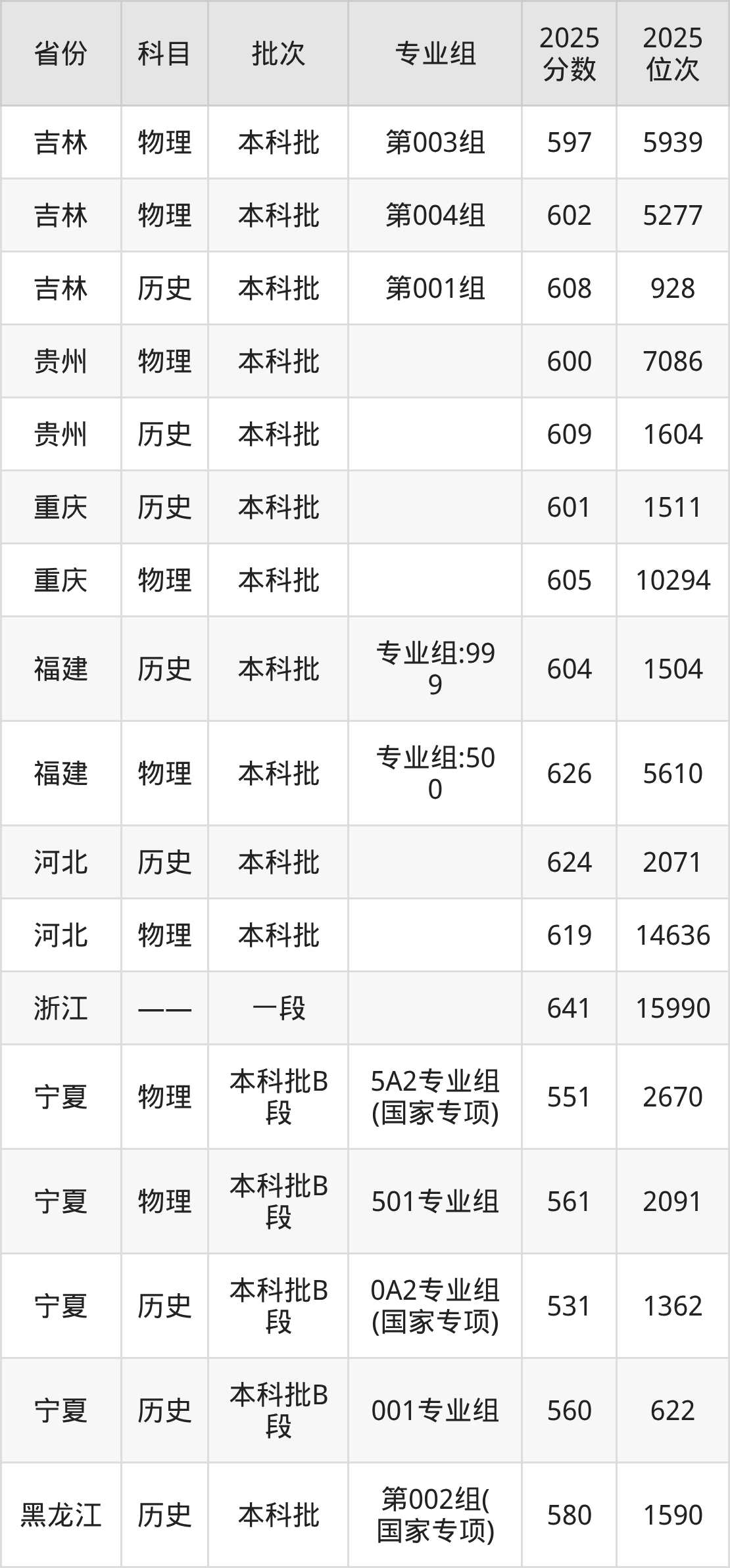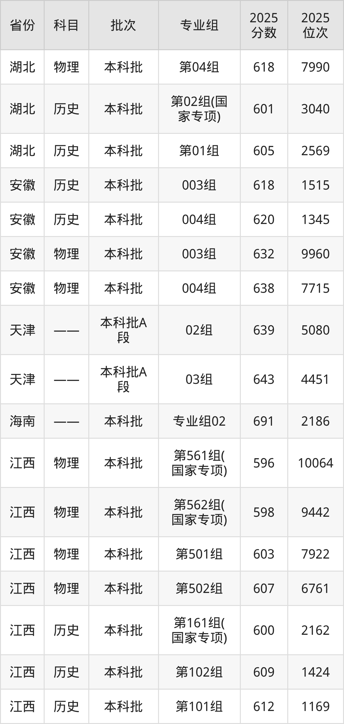 山东大学(威海)第301组(国家专项计划组):2025年投档录取最低分为620分,录取最低位次为2608名。