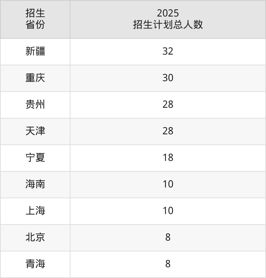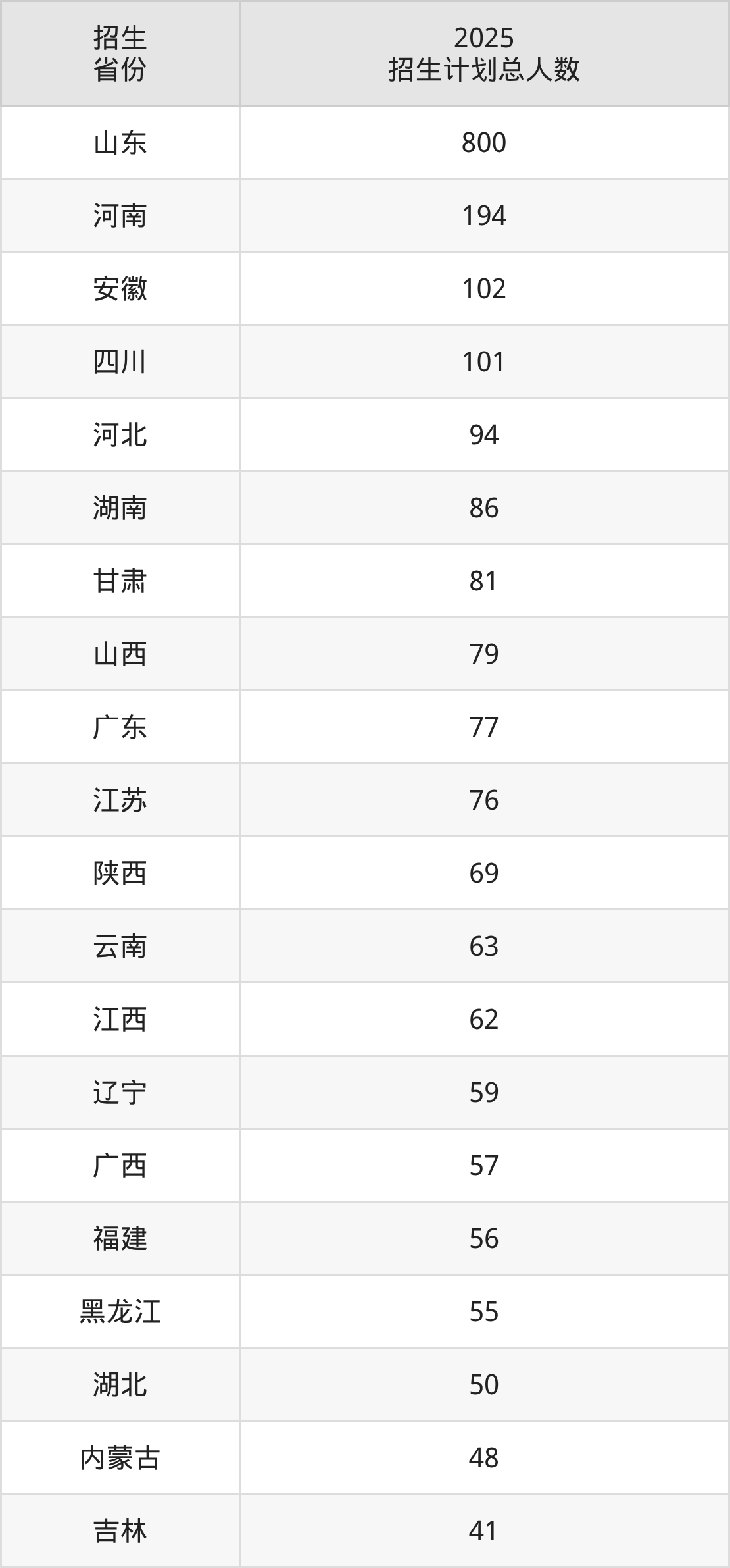 2025年山东大学(威海)面向全国29个省市开展本科招生;招生专业共9个,招生人数共2422人。2025年在山东省招生计划总人数是800人,其中,山东大学(威海)在山东省招生人数最多的是电子信息类。山东大学(威海)在各省具体招生人数情况如下表。