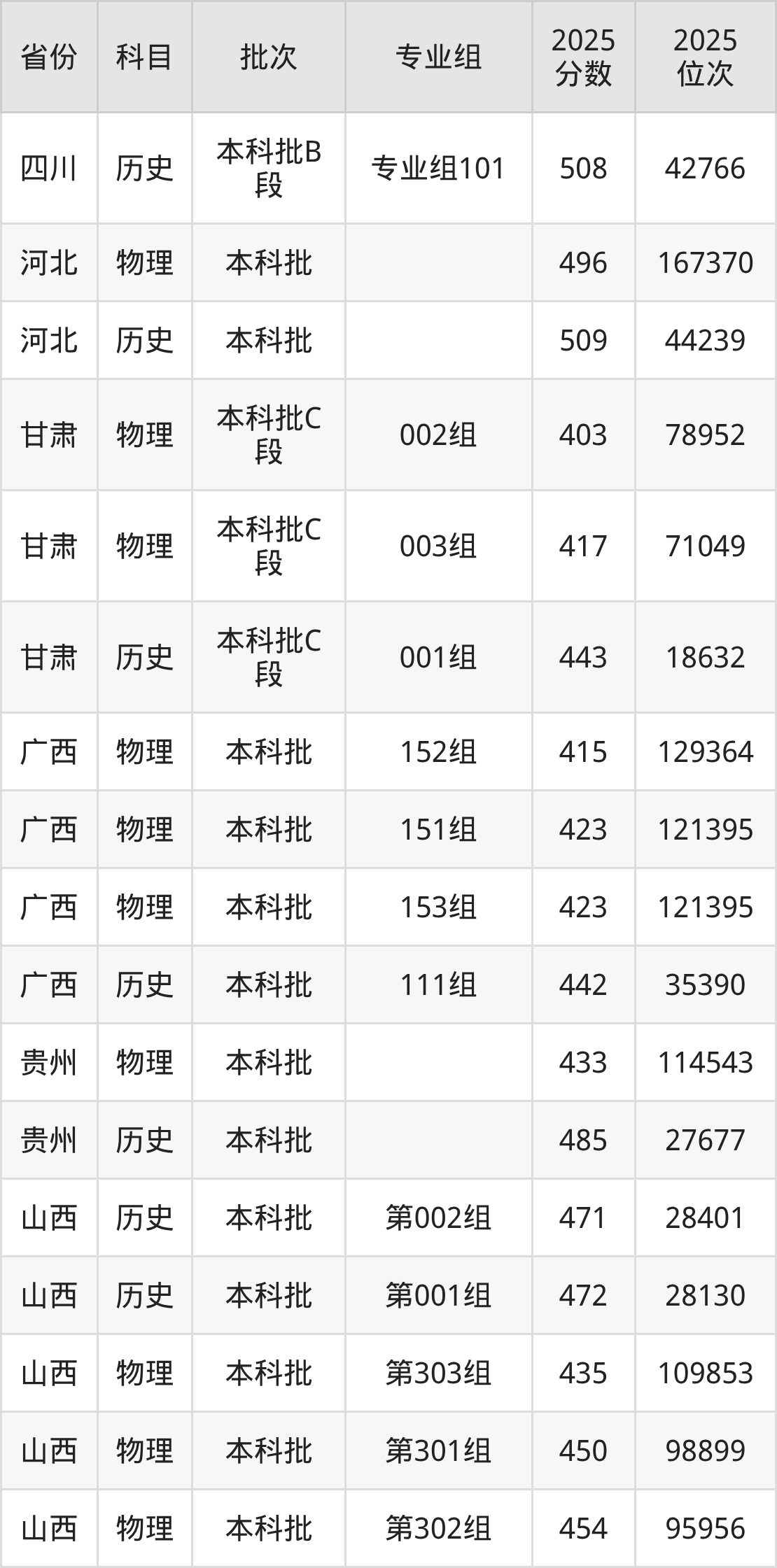 普通类本科物理类最低458分,本科历史类最低503分