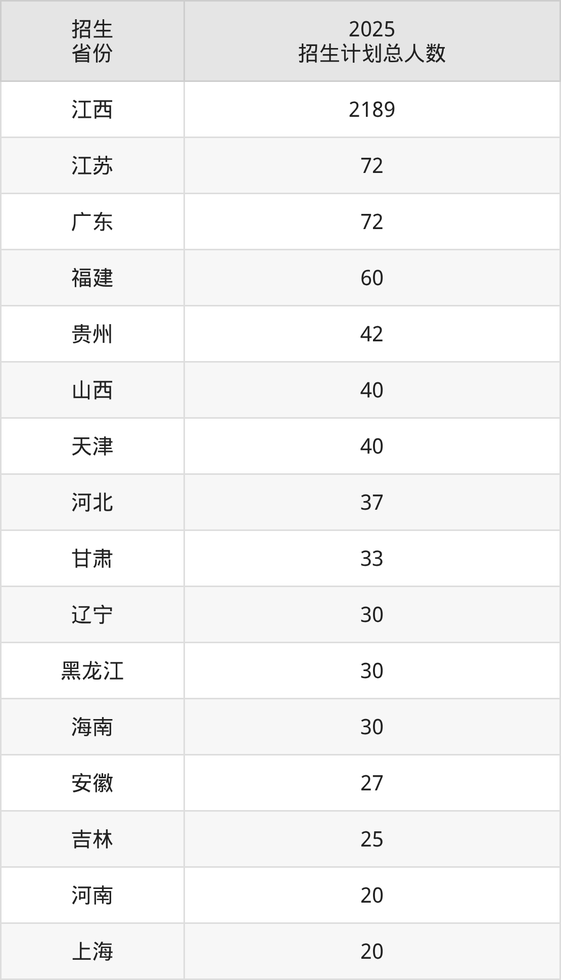 2025年江西财经大学现代经济管理学院面向全国26个省市开展本科招生;招生专业共26个,招生人数共2896人。2025年在江西省招生计划总人数是2189人,其中,江西财经大学现代经济管理学院在江西省招生人数最多的是计算机科学与技术。江西财经大学现代经济管理学院在各省具体招生人数情况如下表。