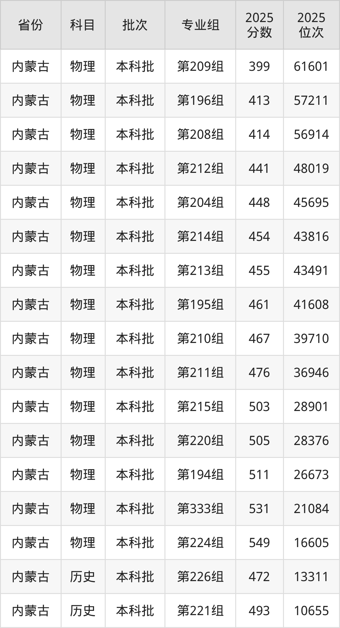 内蒙古师范大学第209组:2025年投档录取最低分为399分,录取最低位次为61601名。