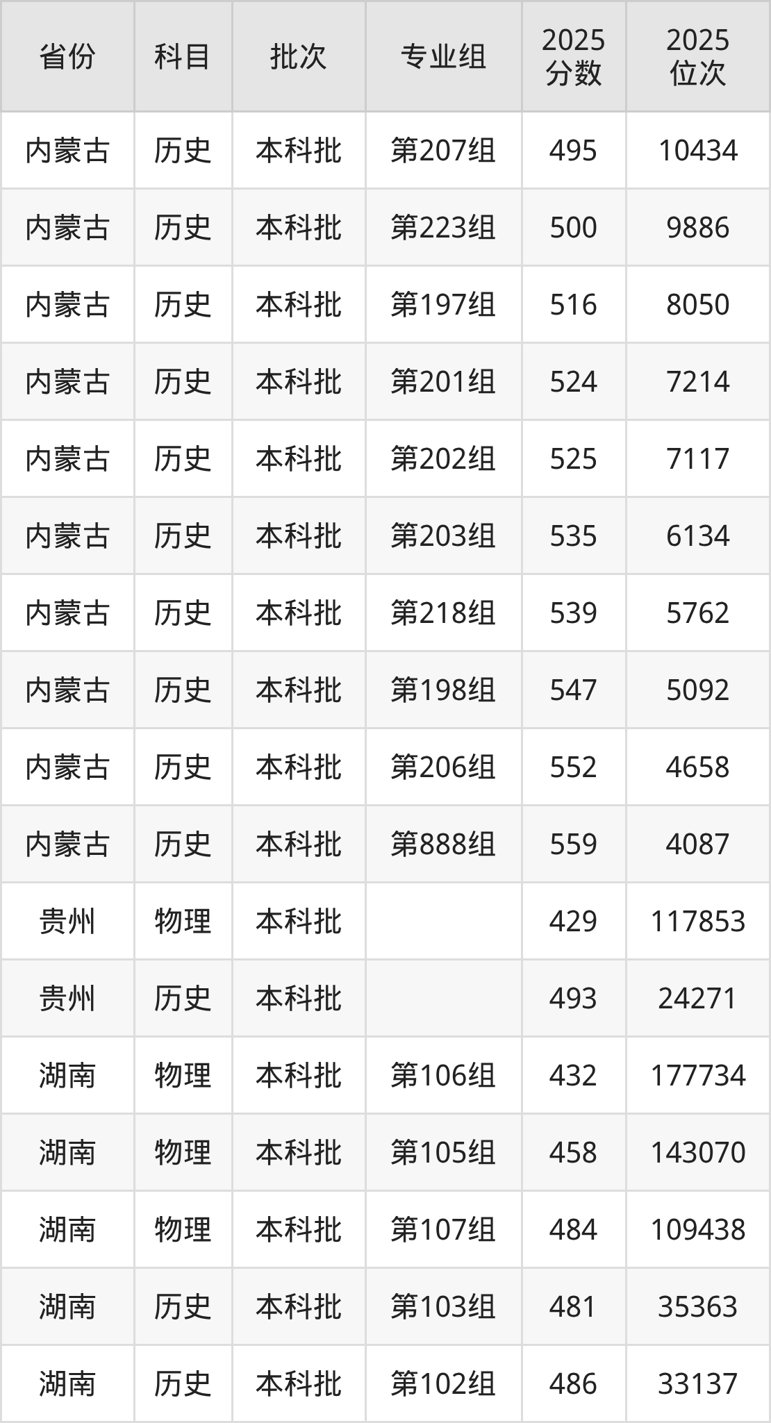 内蒙古师范大学210组:2025年投档录取最低分为492分,录取最低位次为178638名。