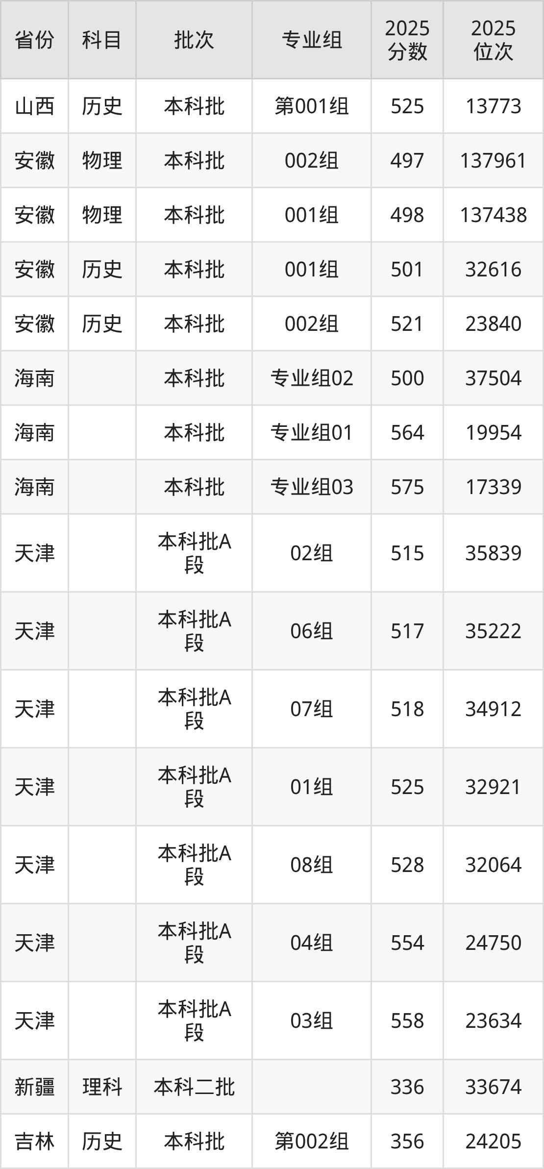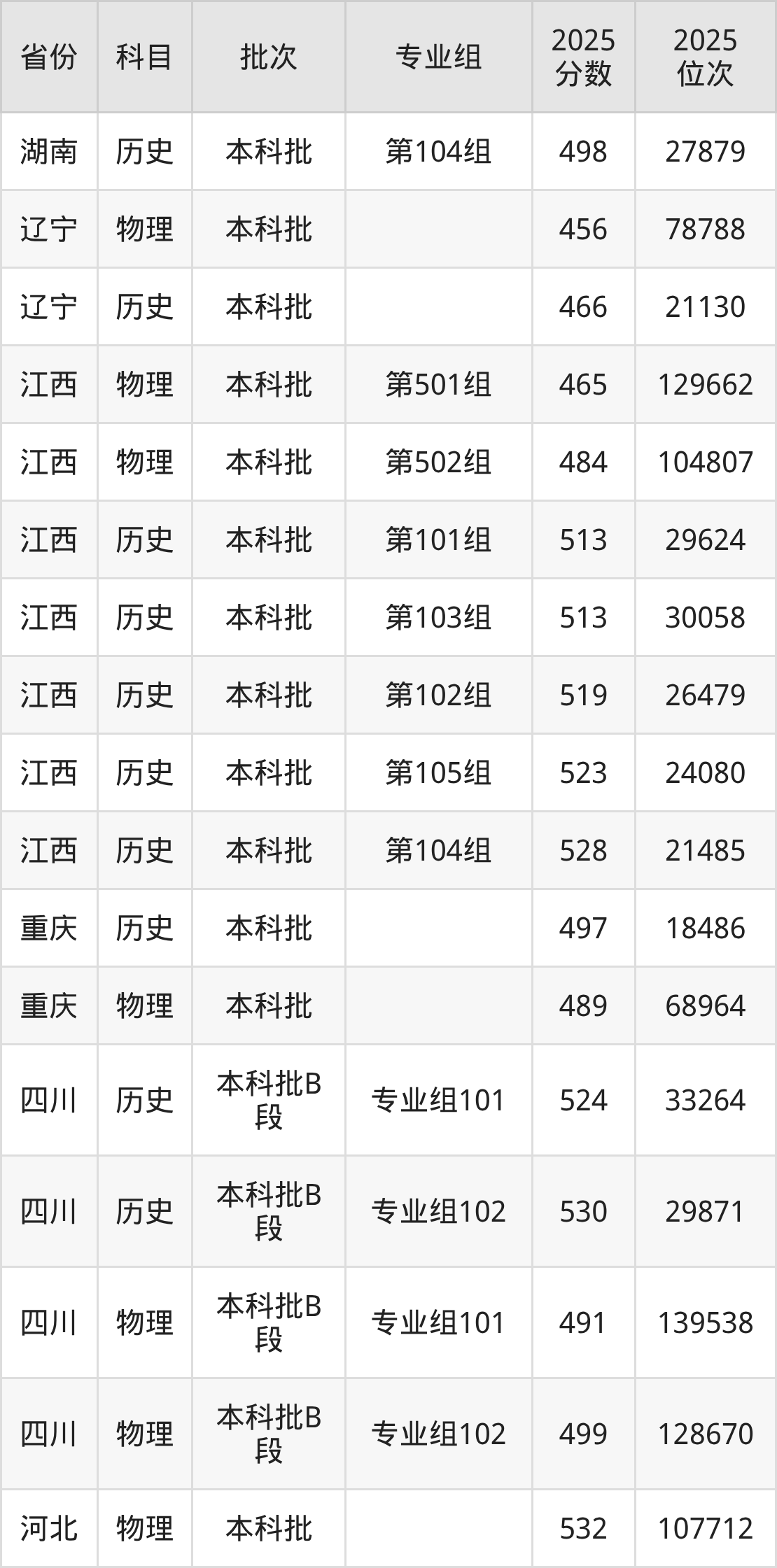 2025年投档录取最低分为493分,录取最低位次为24271名。