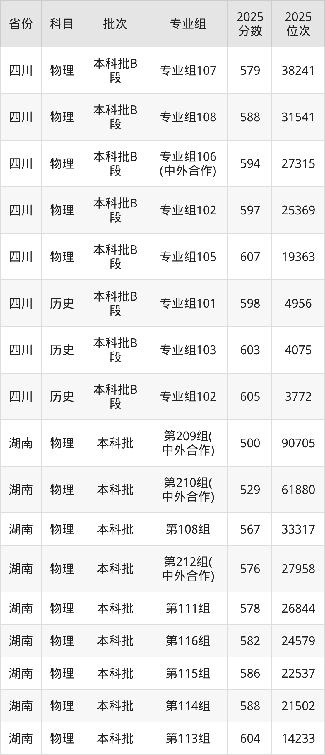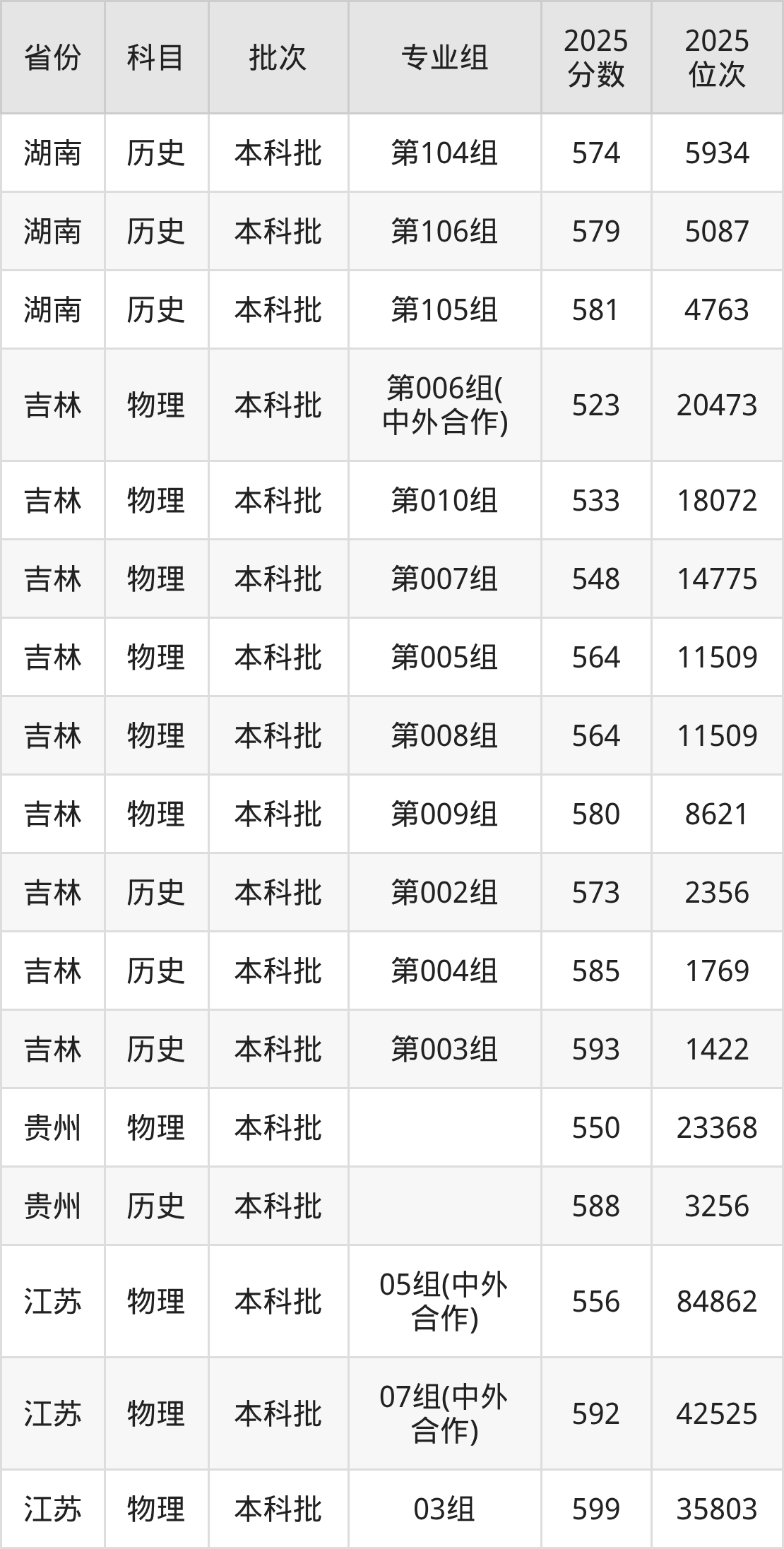 云南大学第505组(中外合作):2025年投档录取最低分为574分,录取最低位次为19635名。