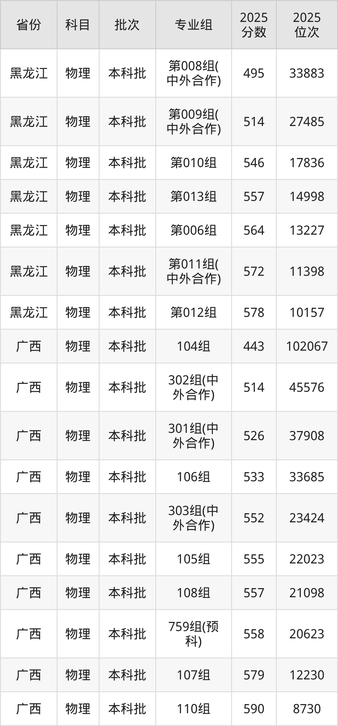 云南大学第008组(中外合作):2025年投档录取最低分为495分,录取最低位次为33883名。