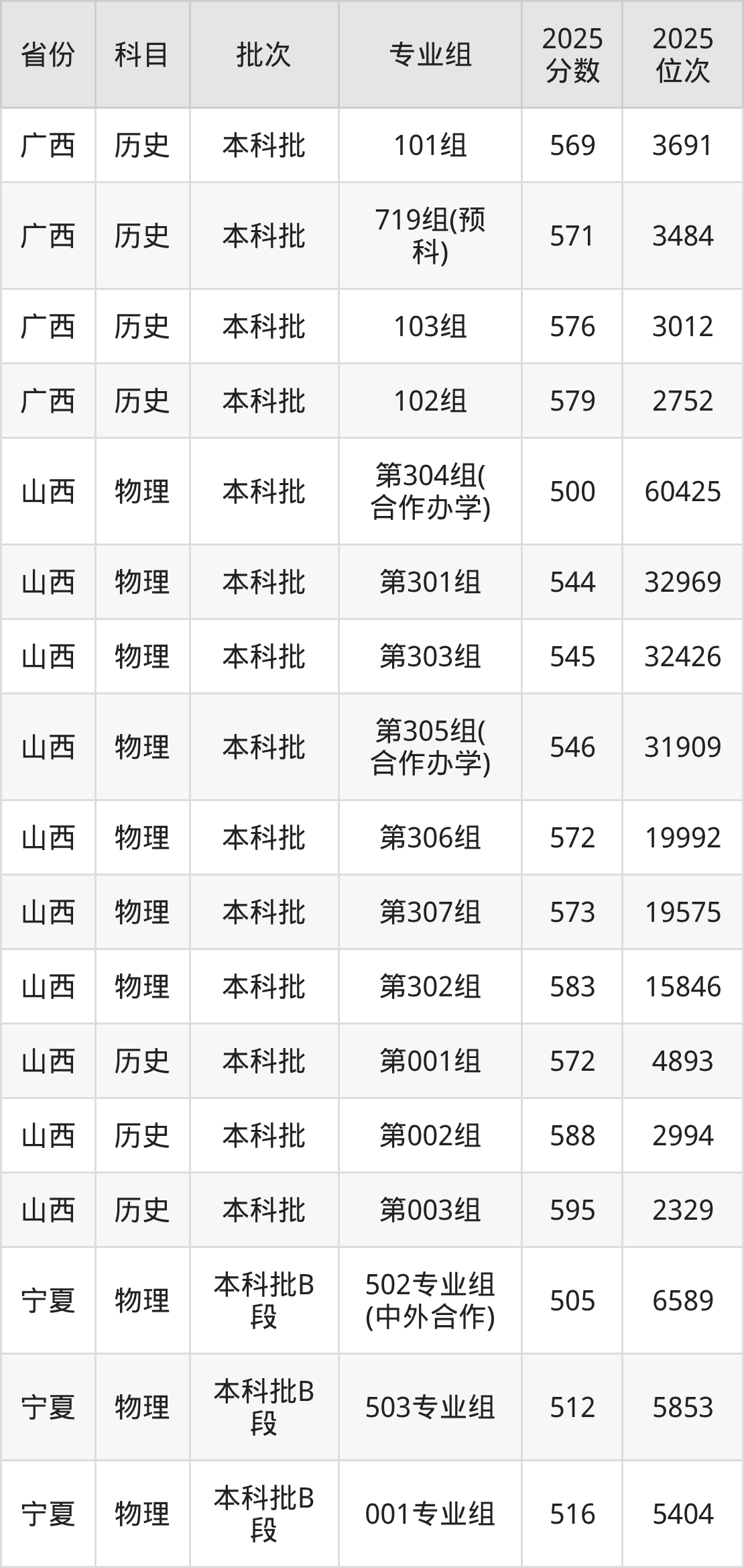 下面是2025年云南大学全国录取分数线一览表,请查阅。