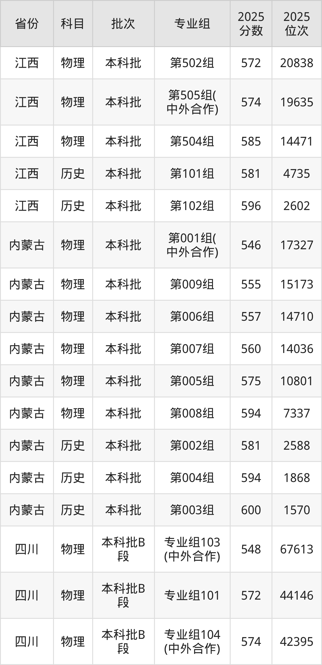 云南大学301组(中外合作):2025年投档录取最低分为526分,录取最低位次为37908名。