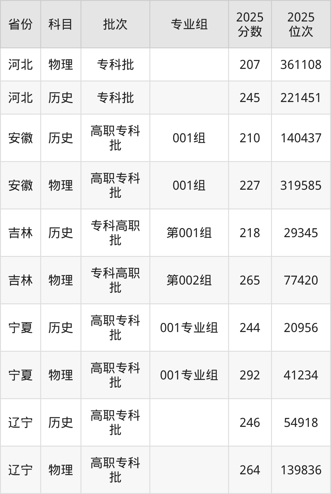 专科历史类投档录取最低245分,专科物理类投档录取最低207分