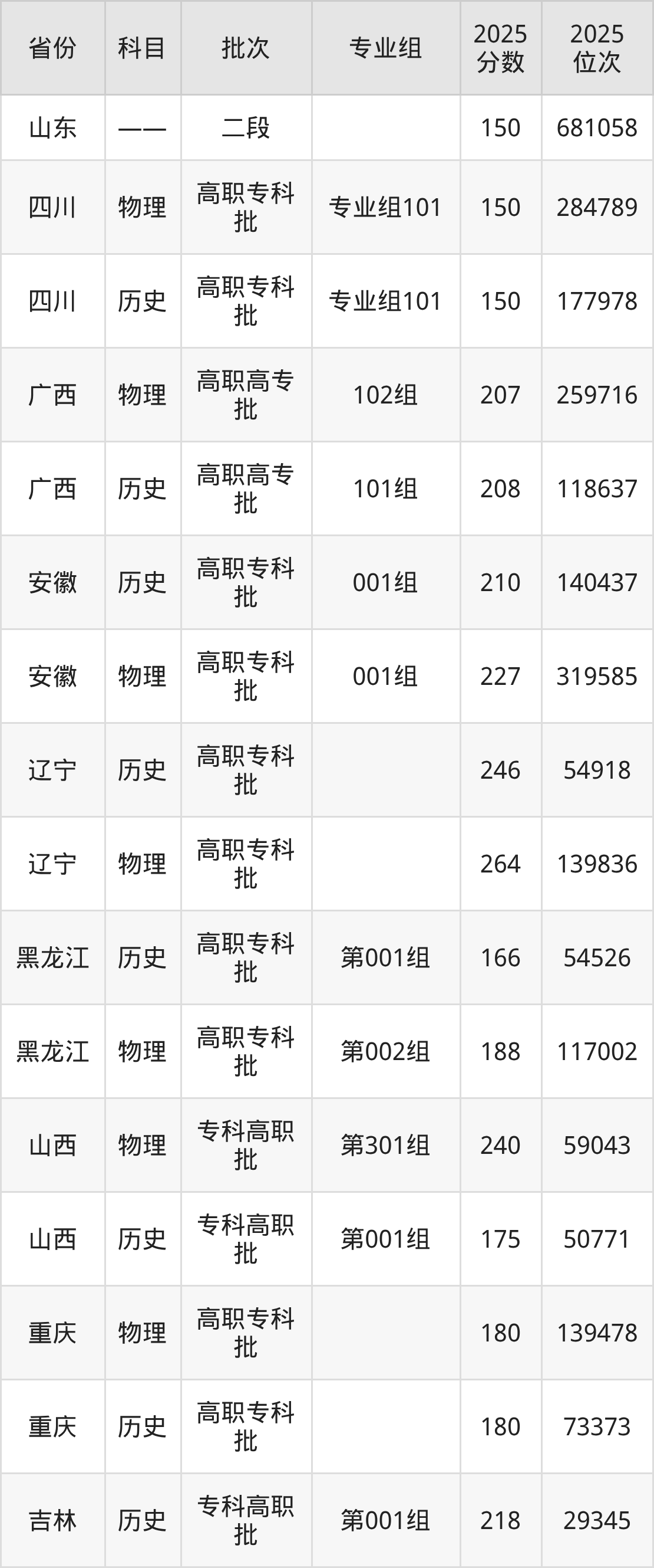 烟台黄金职业学院专业组101:2025年投档录取最低分为150分,录取最低位次为177978名。