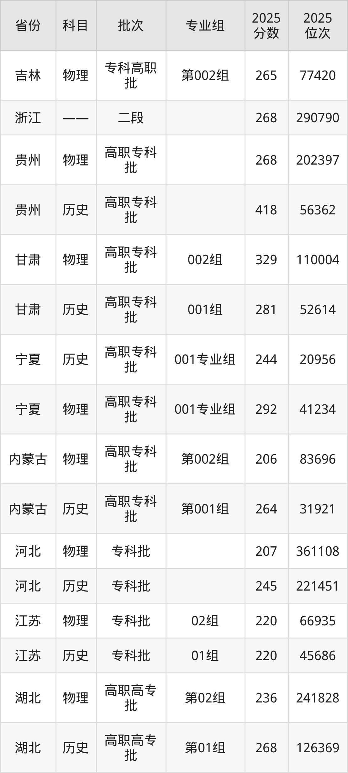 2025年投档录取最低分为268分,录取最低位次为202397名。