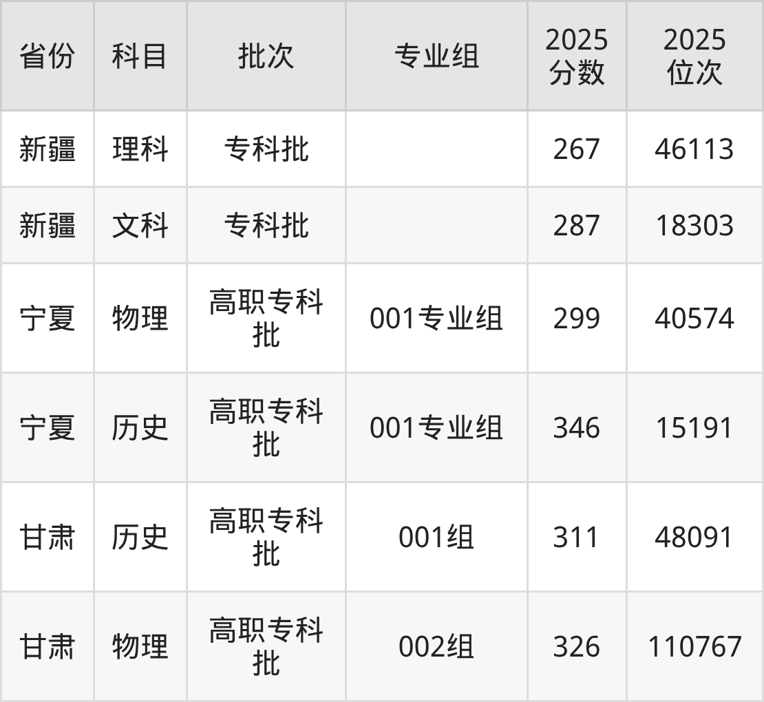 昌吉职业技术学院001专业组:2025年投档录取最低分为311分,录取最低位次为48091名。