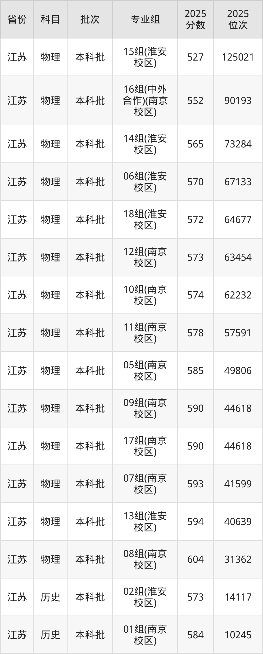 南京林业大学01组(南京校区):2025年投档录取最低分为584分,录取最低位次为10245名。