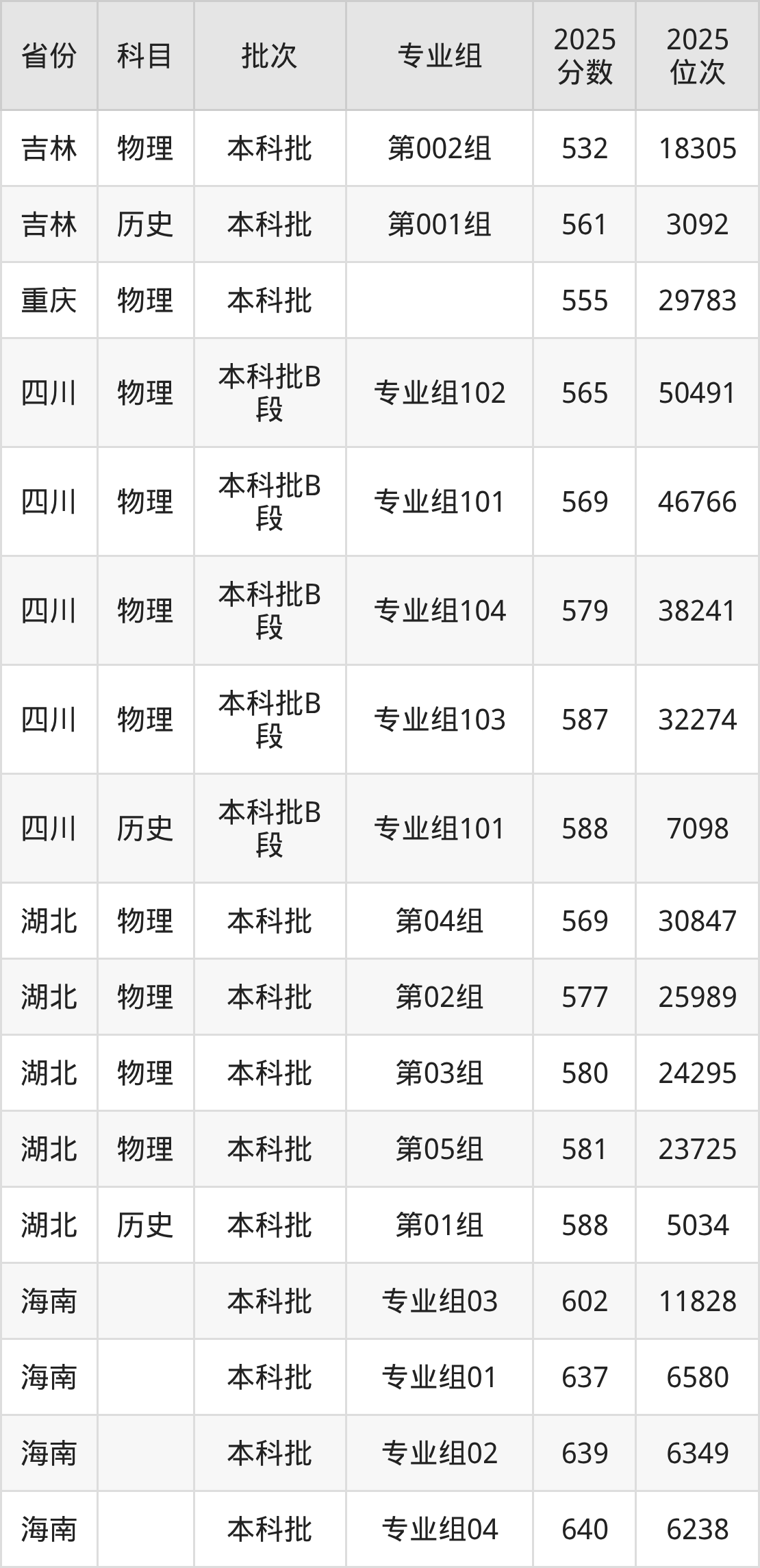2025年投档录取最低分为555分,录取最低位次为30555名。