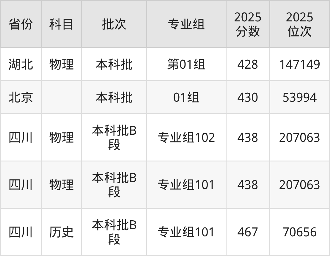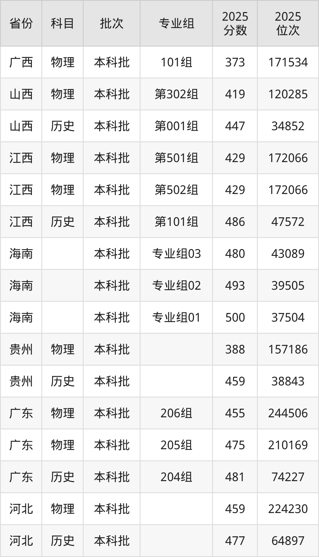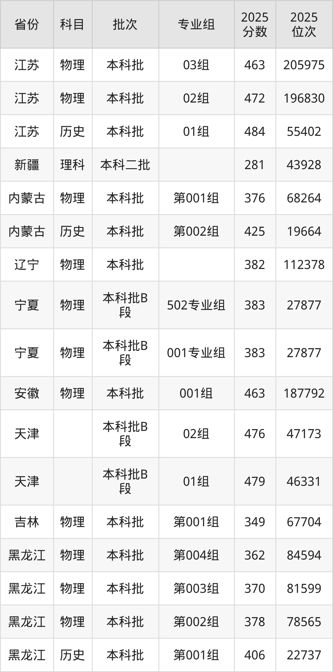 2025年在本科物理类进行招生,各专业组分数线详情如下: