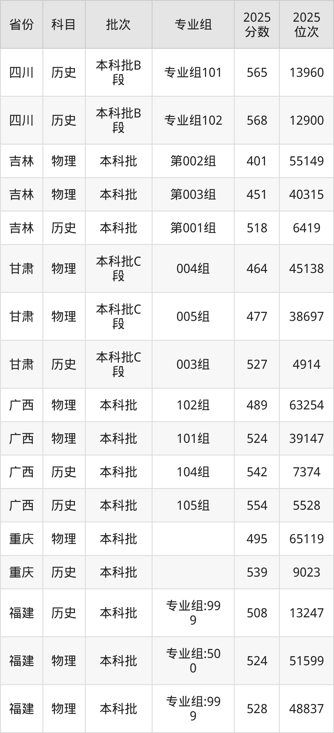 普通类本科物理类最低484分,本科历史类最低537分