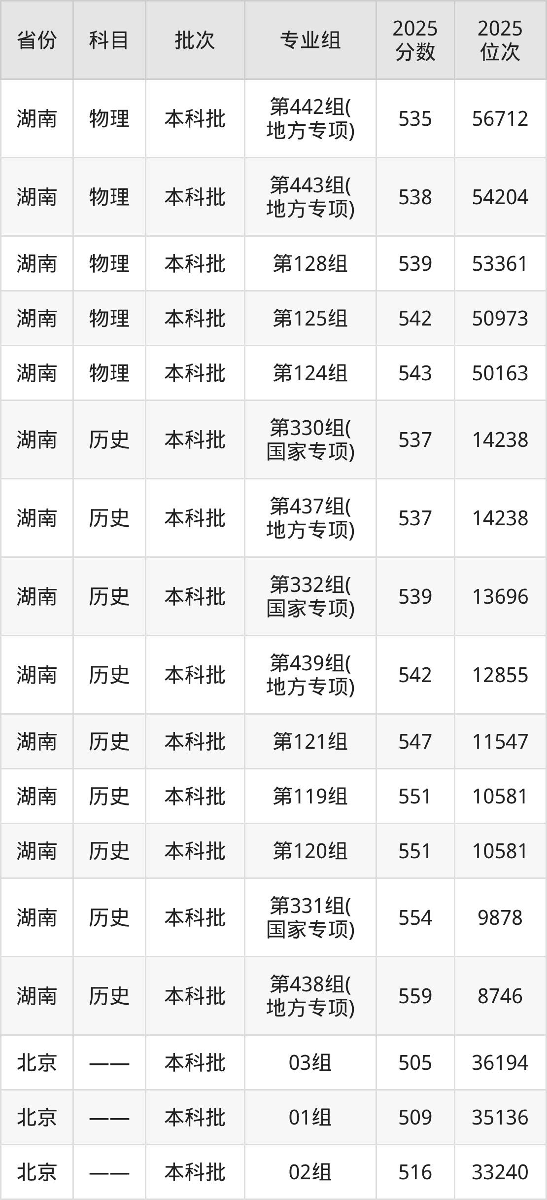 湖南科技大学第330组(国家专项):2025年投档录取最低分为537分,录取最低位次为14238名。