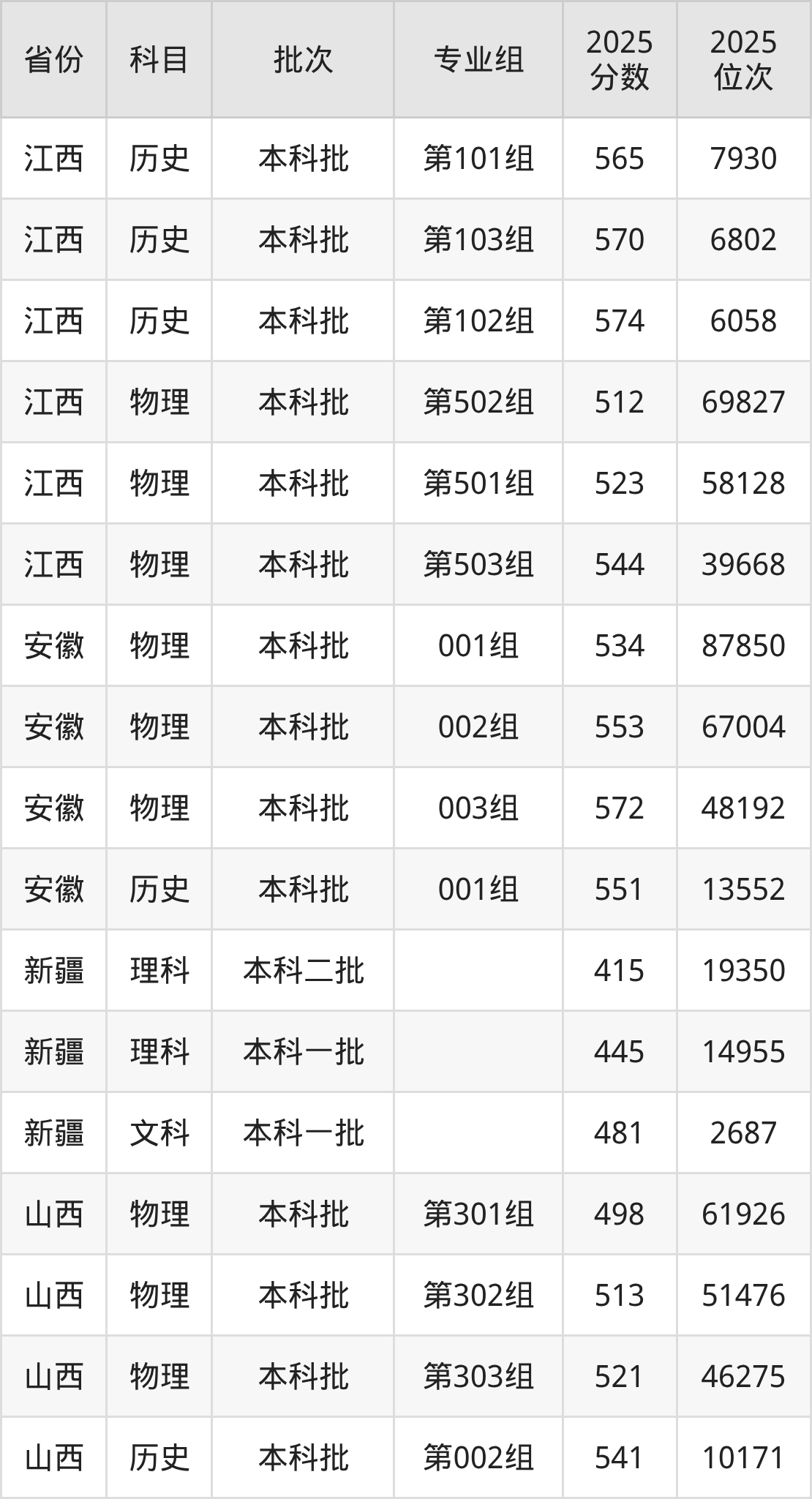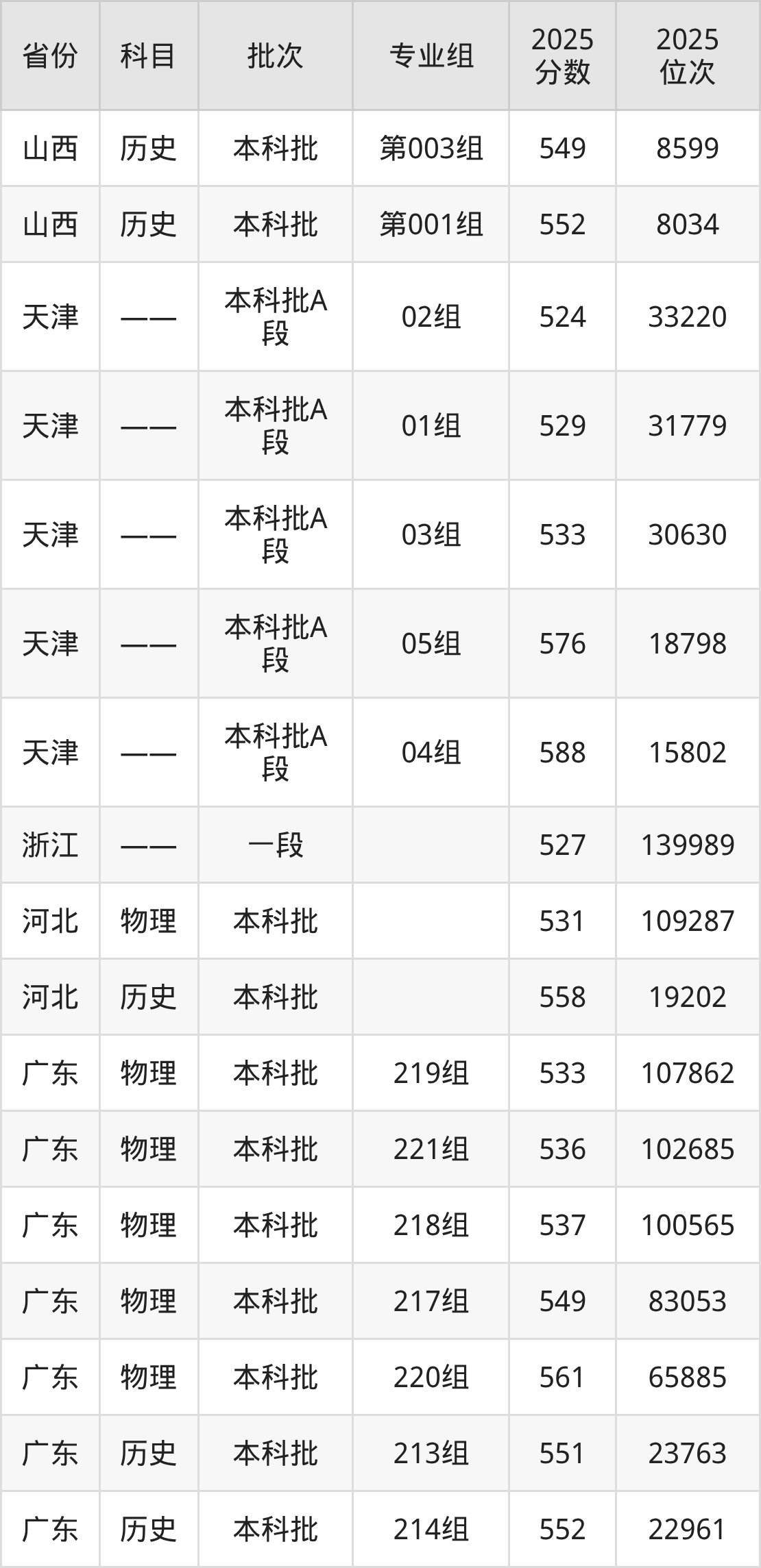 普通类本科物理类最低535分,本科历史类最低573分