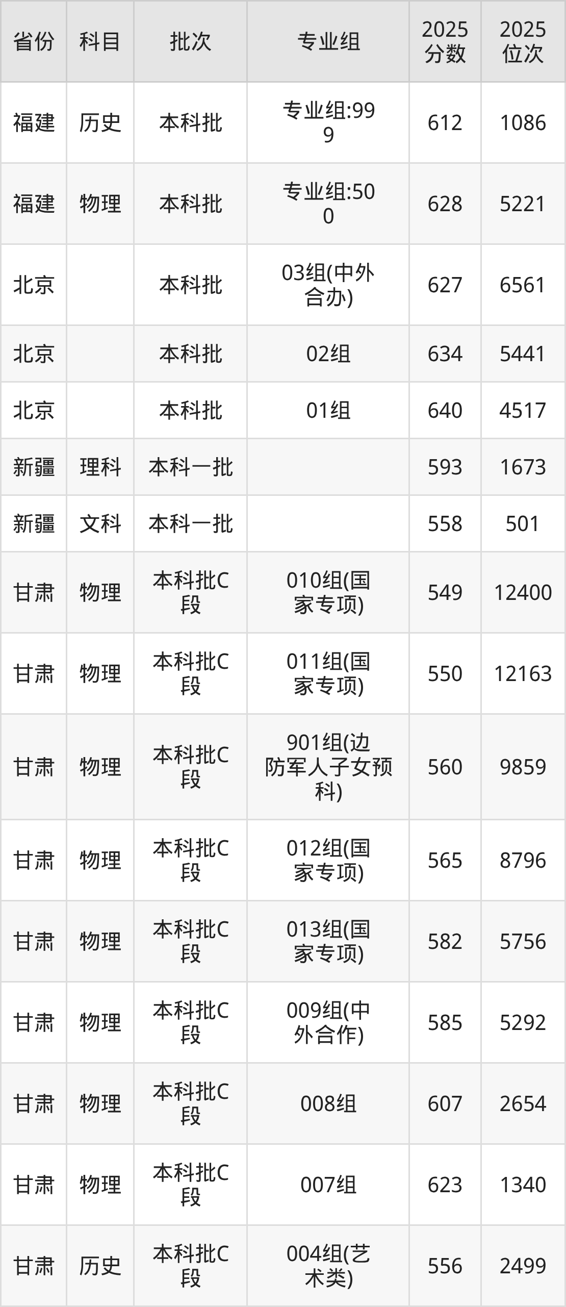 汉语言文学(博雅类,含中文、历史、哲学专业):2025年投档录取最低分为636分。