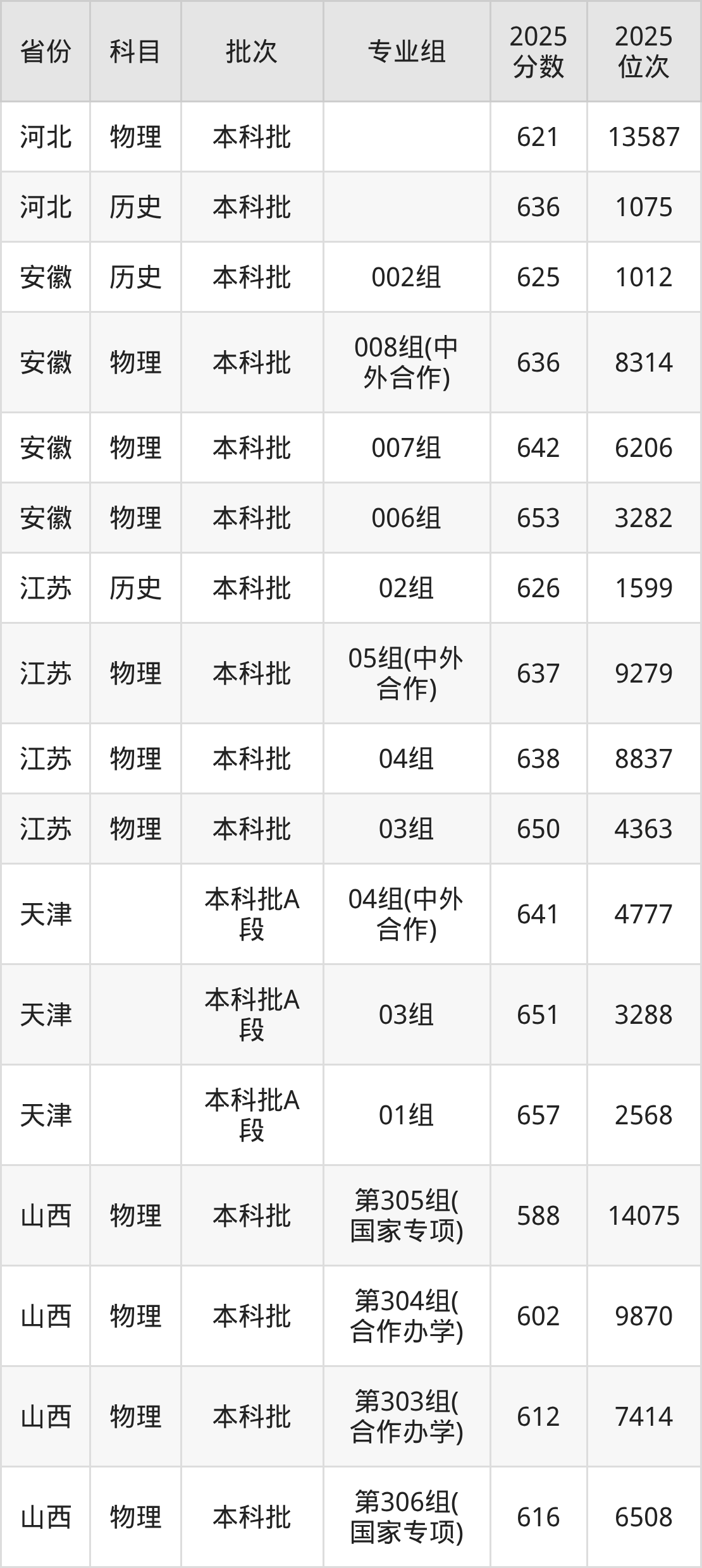 物理学(中外合作办学):2025年投档录取最低分为621分。