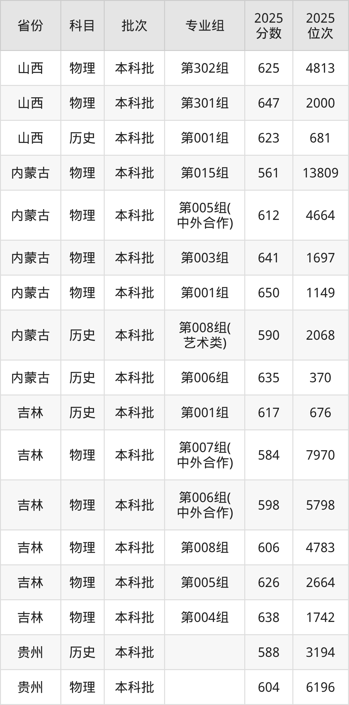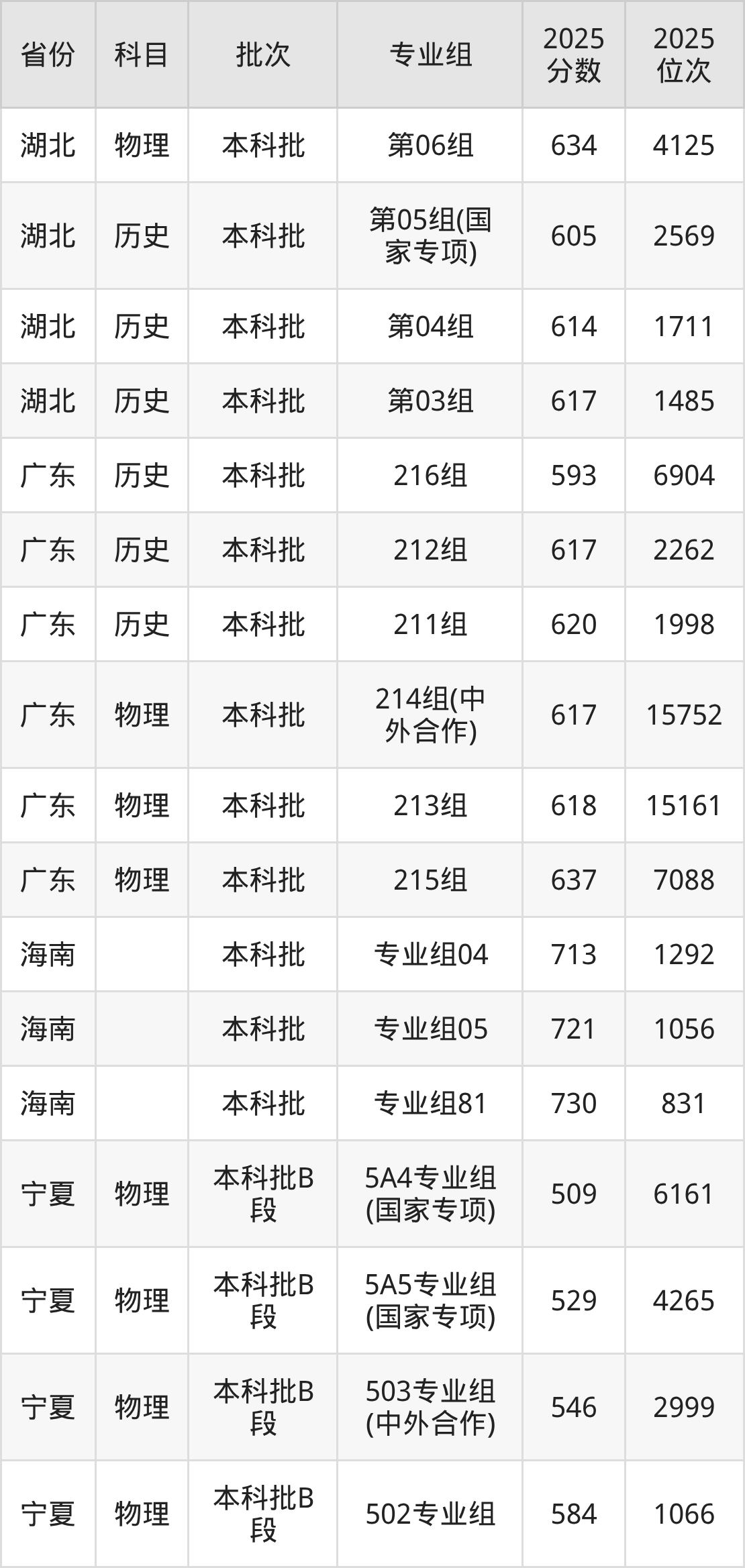重庆大学009专业组(中外合作办学):2025年投档录取最低分为585分,录取最低位次为5292名。