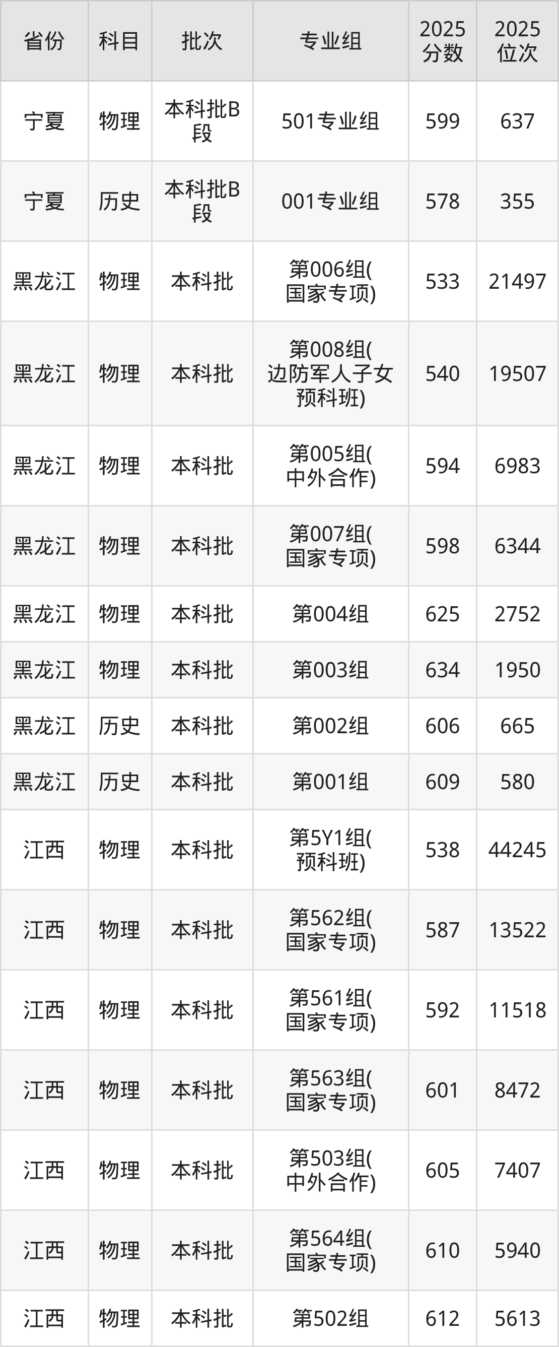 重庆大学901专业组(边防军人子女预科):2025年投档录取最低分为560分,录取最低位次为9859名。