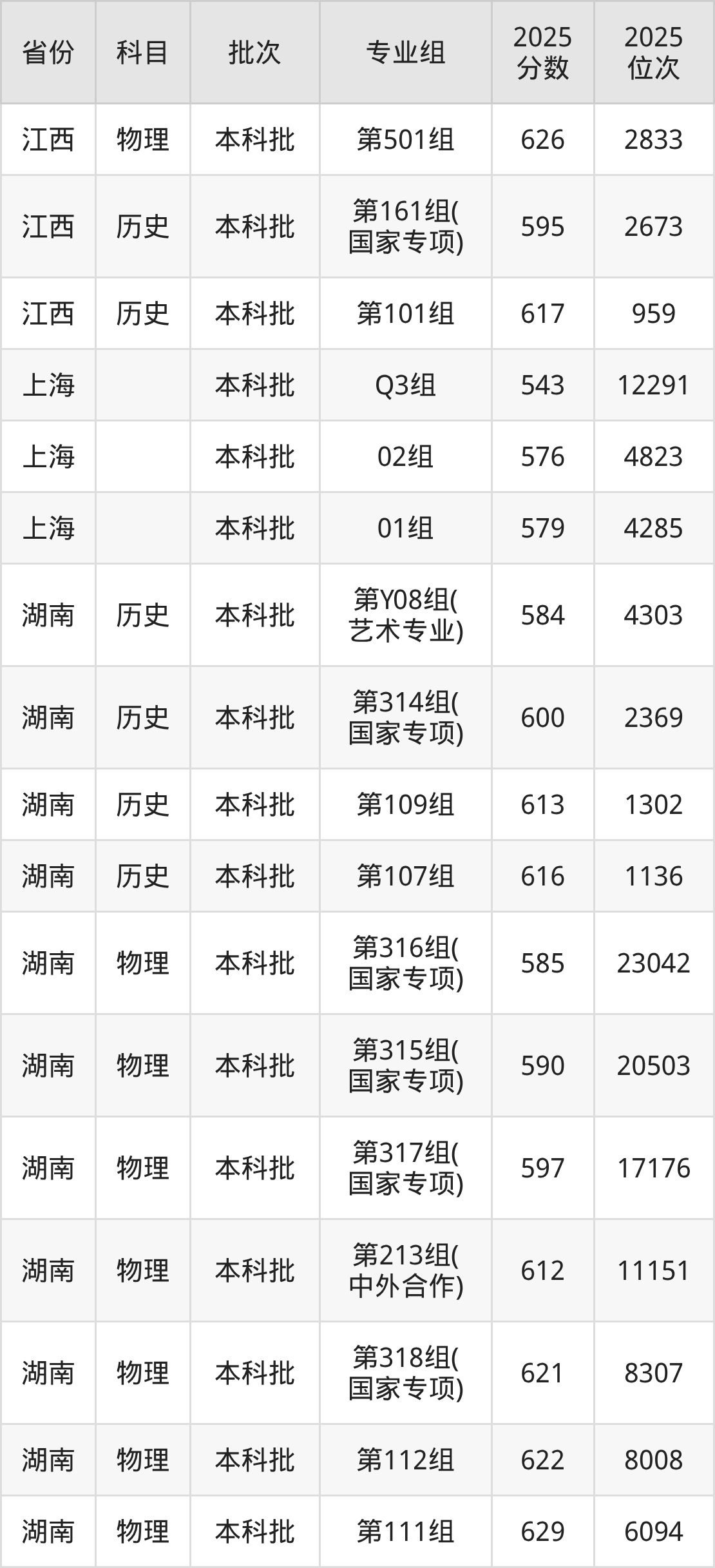 人文科学试验班(法学新闻类):2025年投档录取最低分为625分。