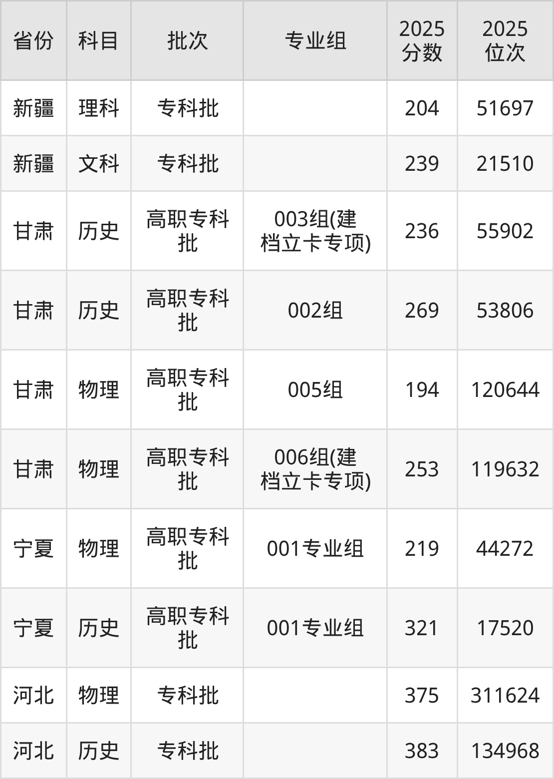 定西职业技术学院006专业组(建档立卡专项):2025年投档录取最低分为253分,录取最低位次为119632名。