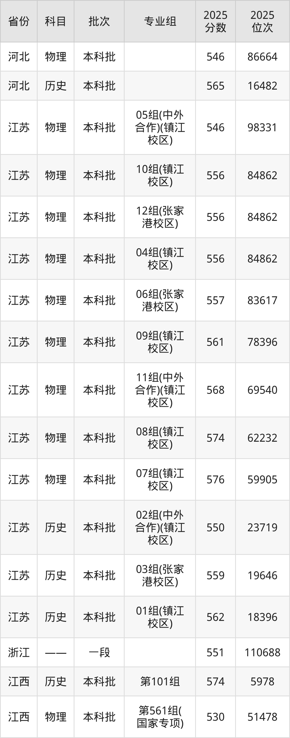 下面是2025年江苏科技大学全国录取分数线一览表,请查阅。