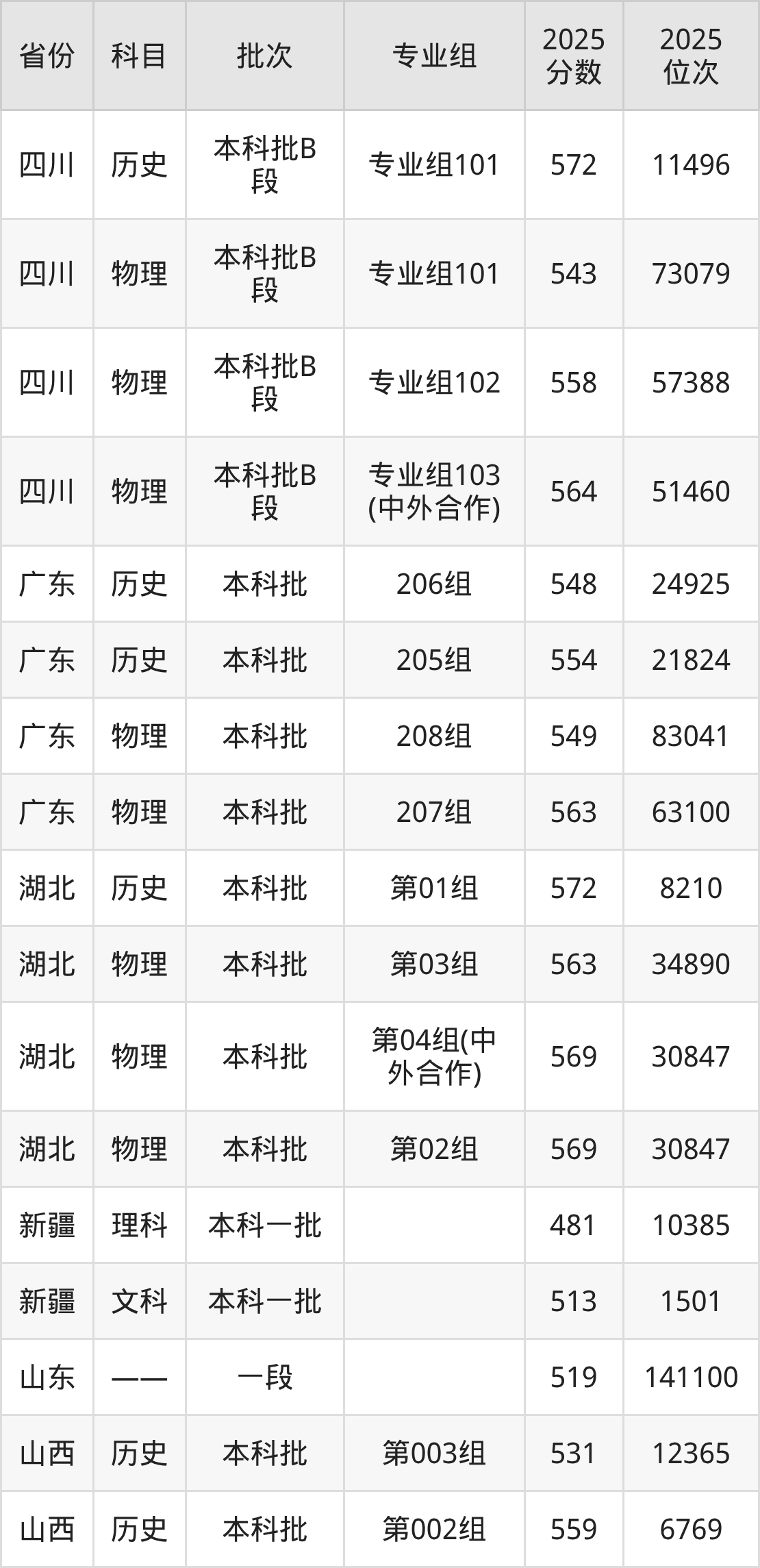 2025年投档录取最低分为565分,录取最低位次为16482名。