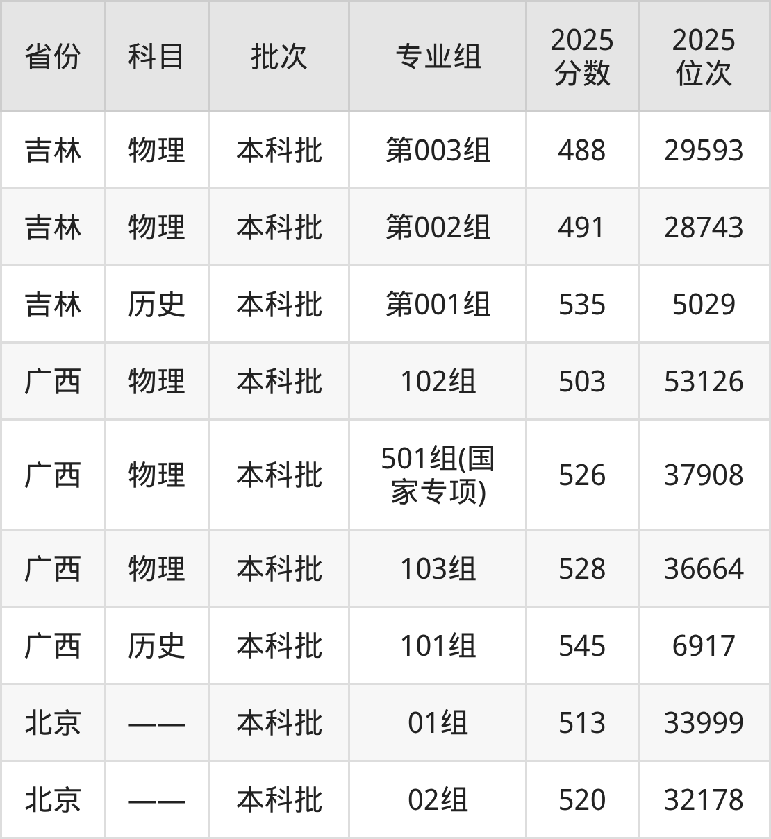 2025年投档录取最低分为518分,录取最低位次为47734名。