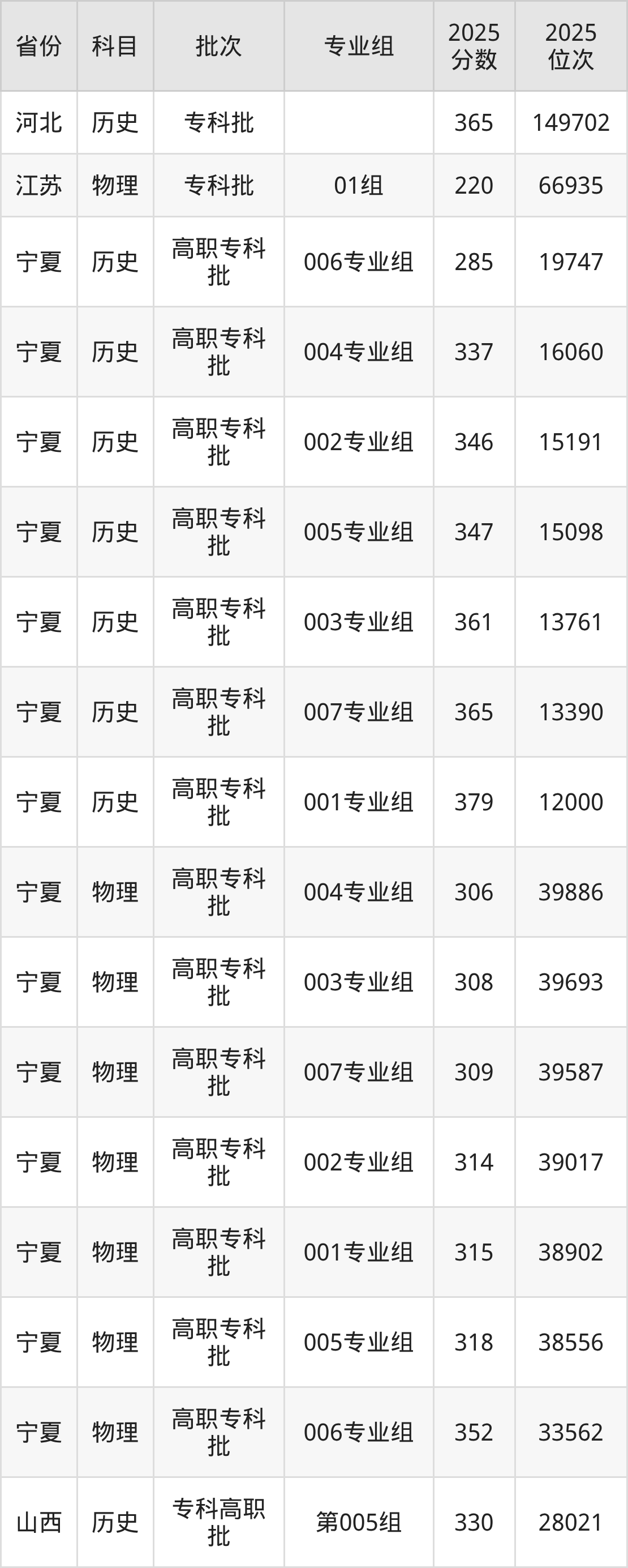 内蒙古北方职业技术学院002专业组:2025年投档录取最低分为346分,录取最低位次为15191名。