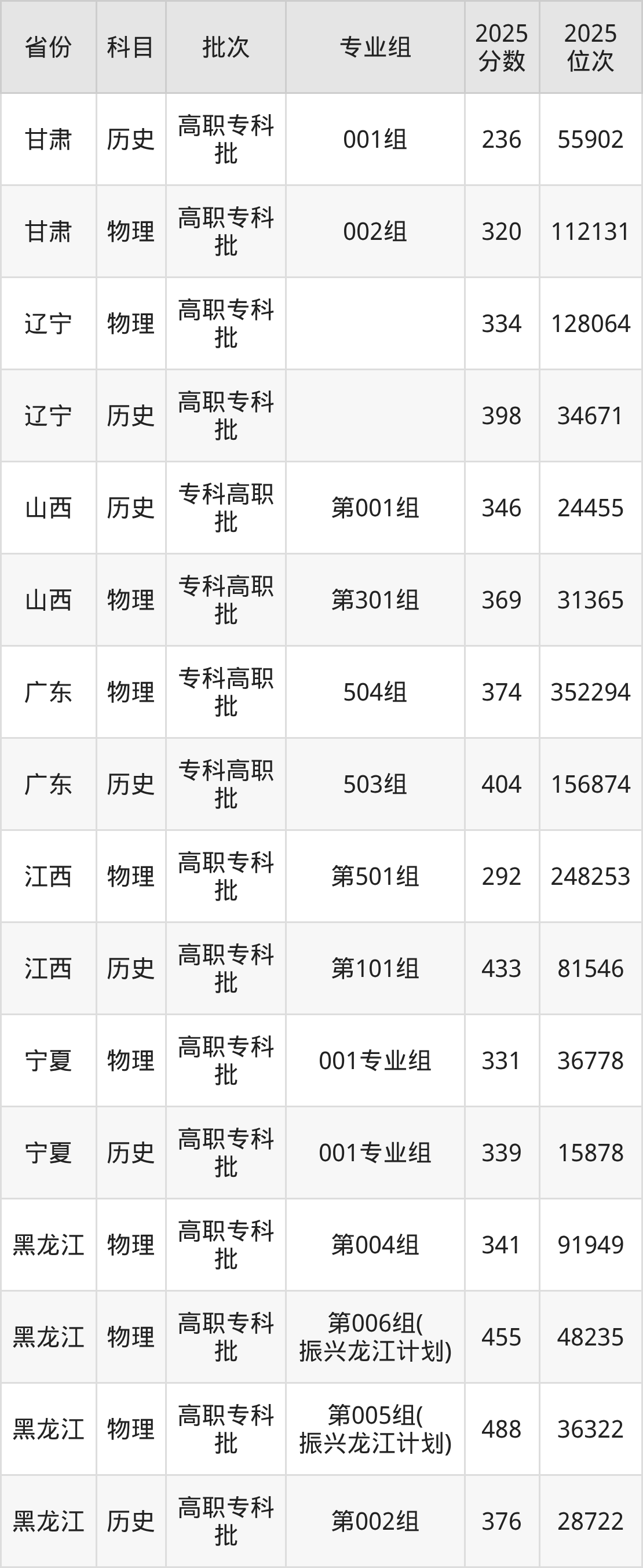下面是2025年黑龙江农业工程职业学院全国录取分数线一览表,请查阅。