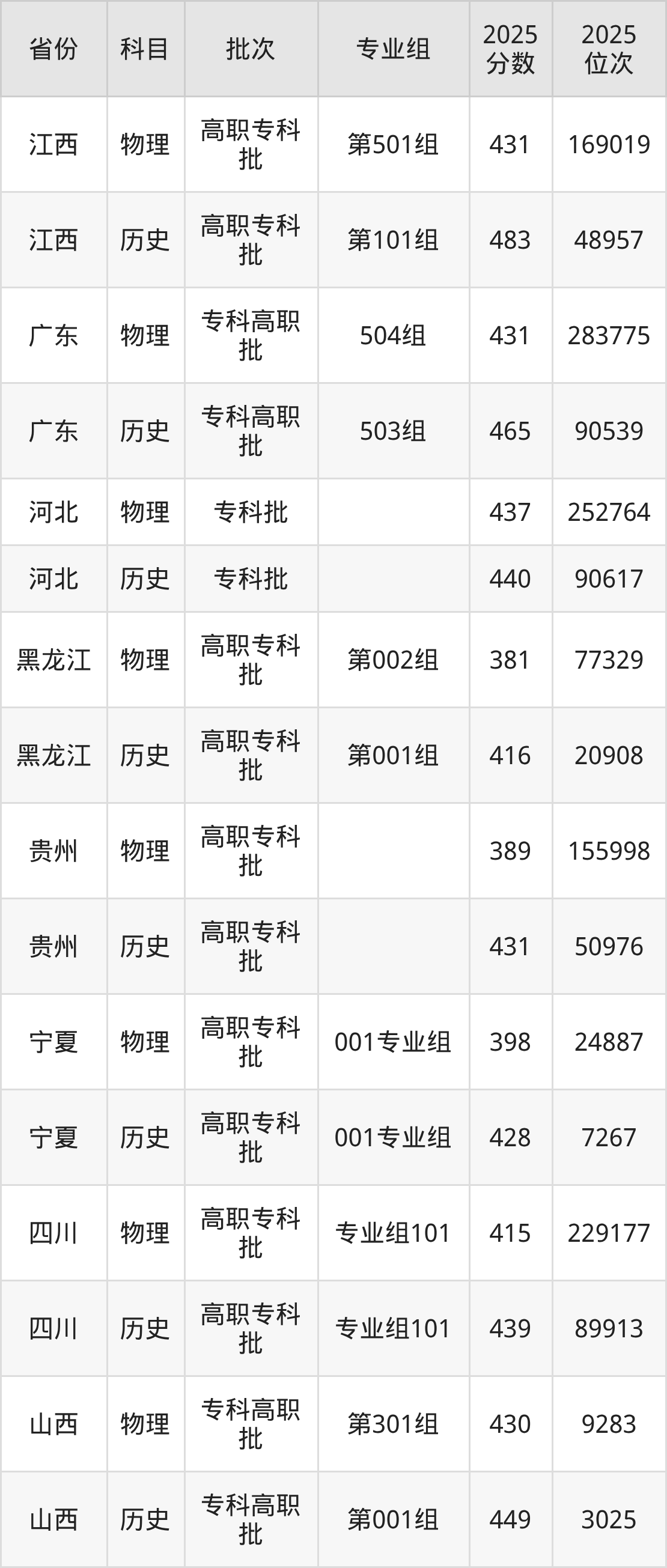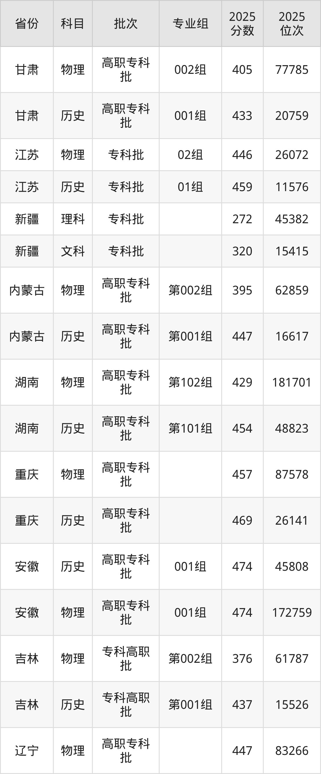 下面是2025年石家庄铁路职业技术学院全国录取分数线一览表,请查阅。