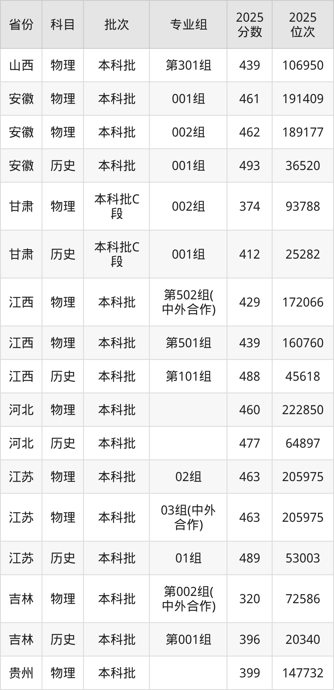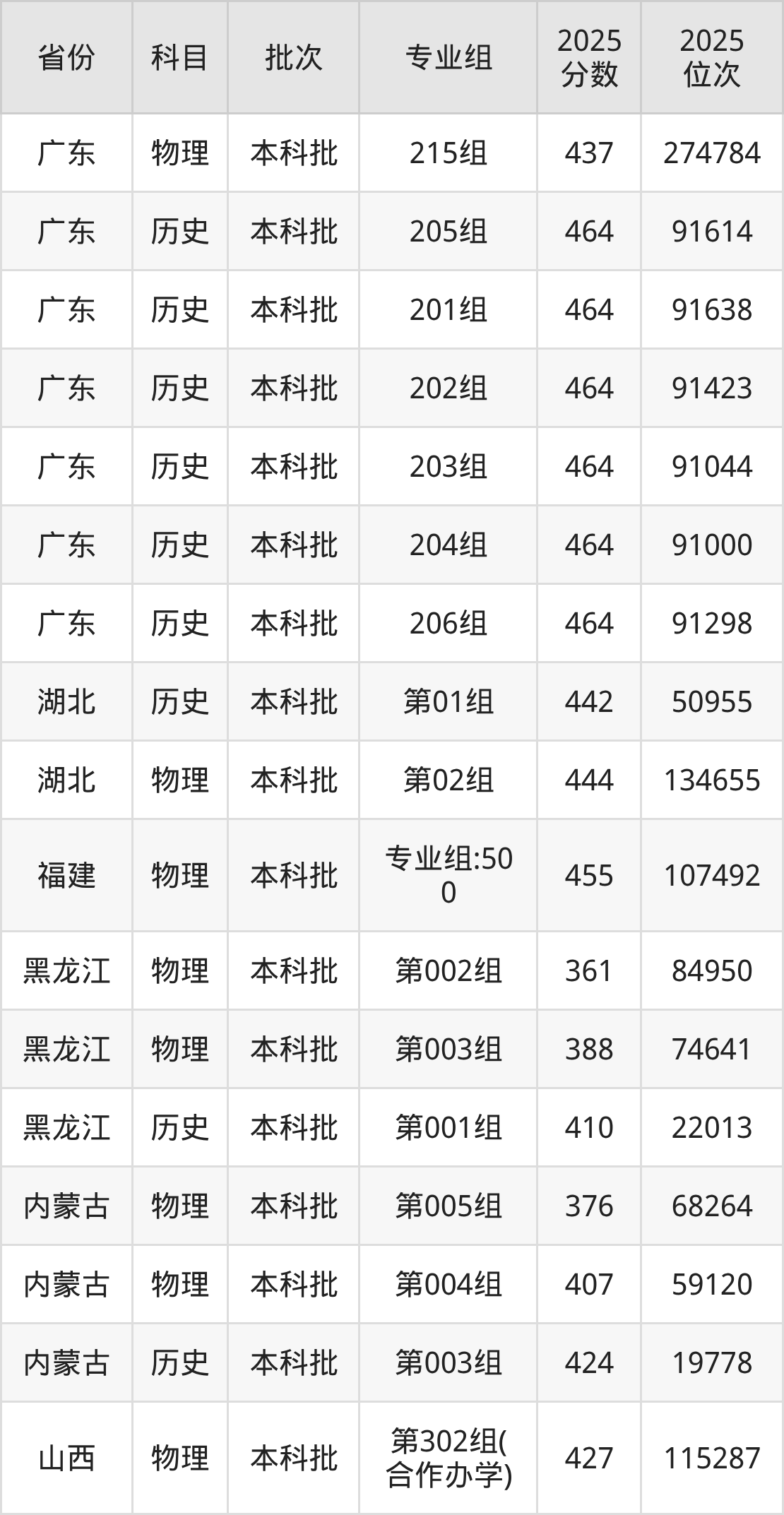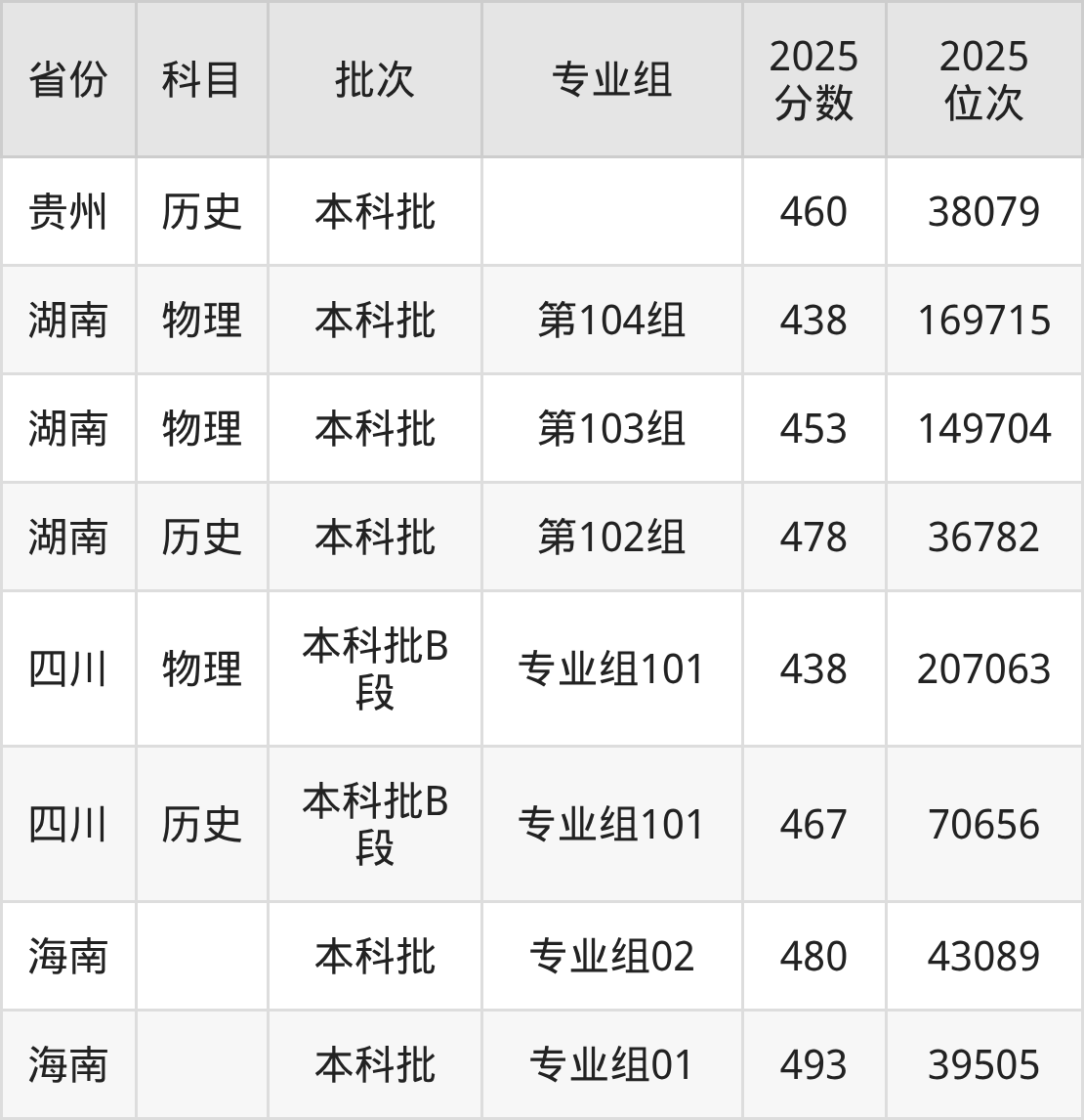 2025年投档录取最低分为460分,录取最低位次为38079名。