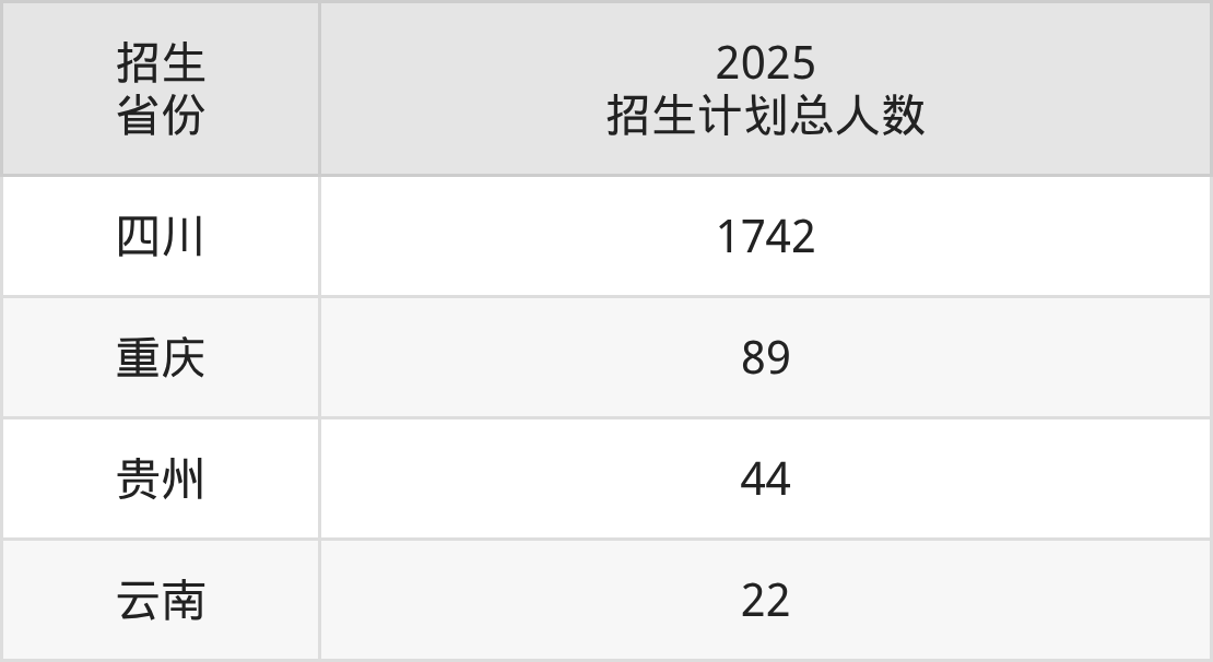2025年成都工业职业技术学院面向全国4个省市开展专科招生;招生专业共35个,招生人数共1897人。2025年在四川省招生计划总人数是1742人,其中,成都工业职业技术学院在四川省招生人数最多的是物联网应用技术。成都工业职业技术学院在各省具体招生人数情况如下表。