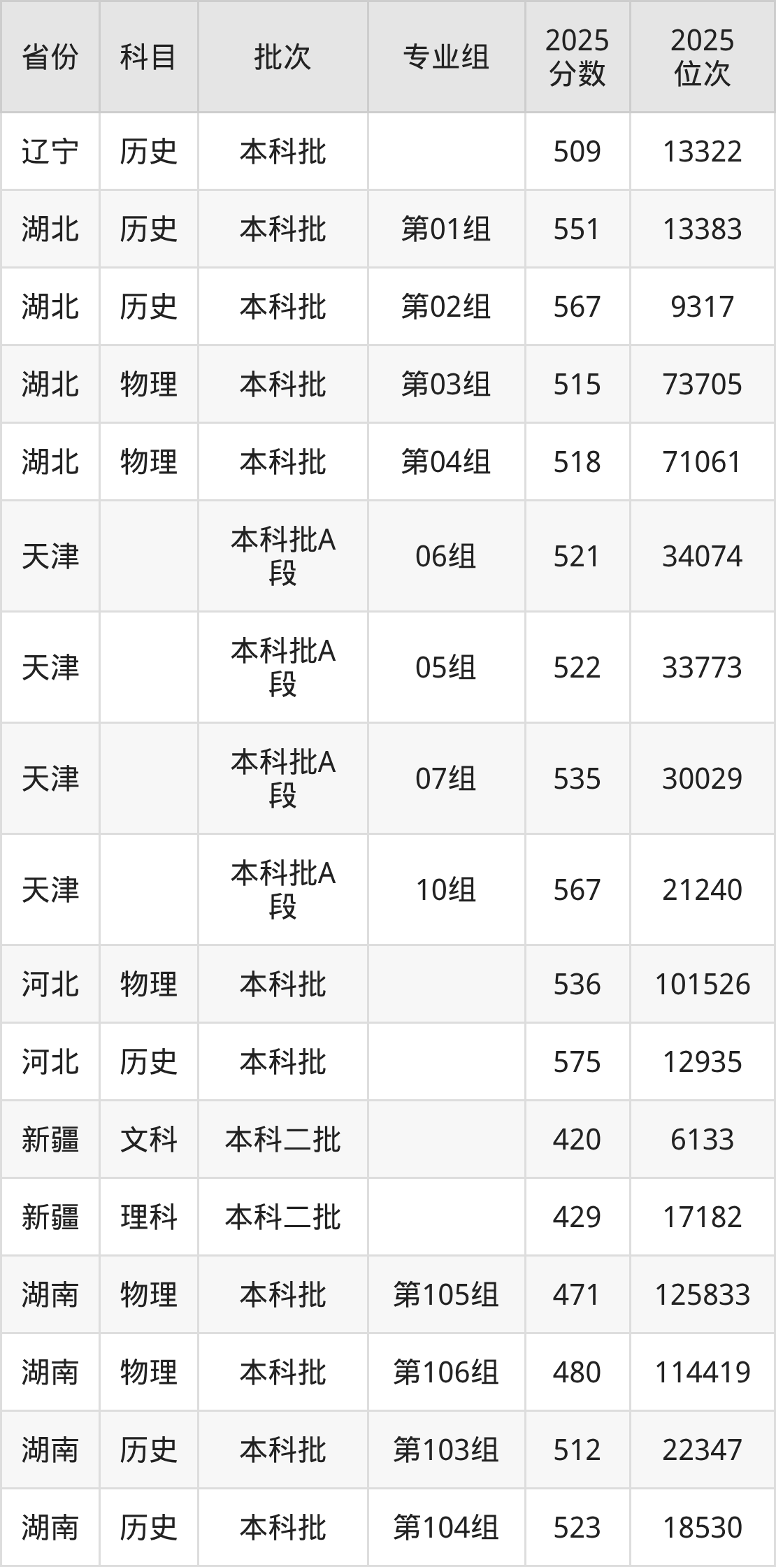 2025年投档录取最低分为429分,录取最低位次为17182名。